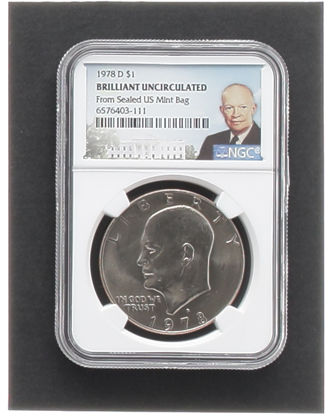 1978-D Eisenhower Silver Dollar - From Sealed US Mint Bag - Dwight D. Eisenhower Label (NGC Brilliant UNC)