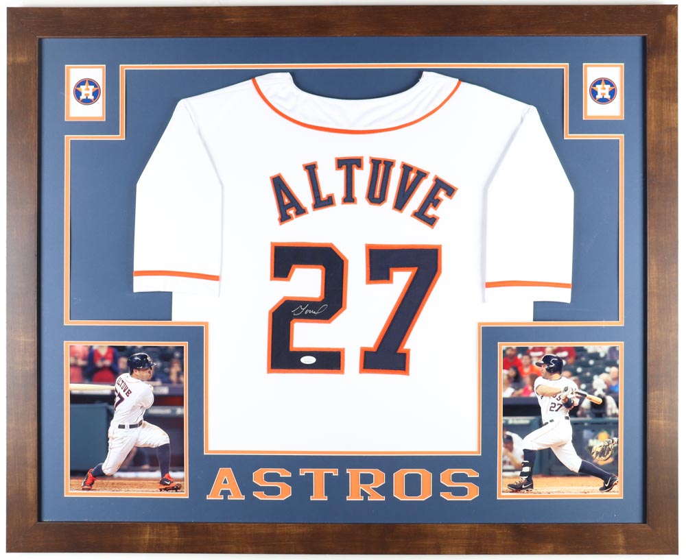 Custom frame measures approximately 35" x 43" in size and features a jersey hand-signed by Jose Altuve.