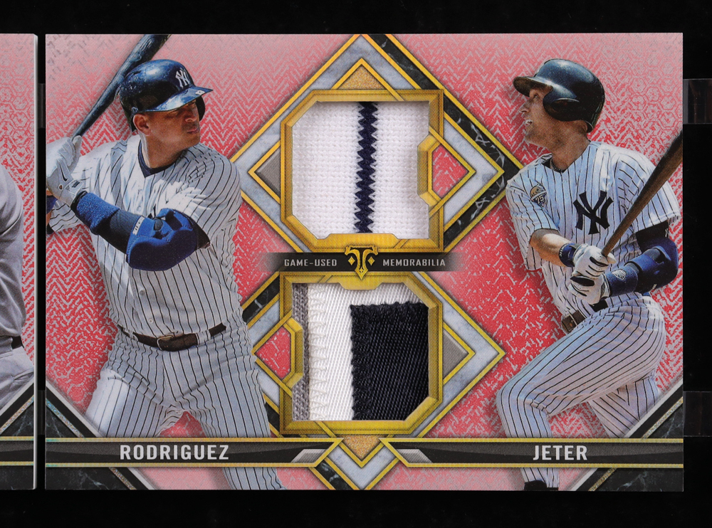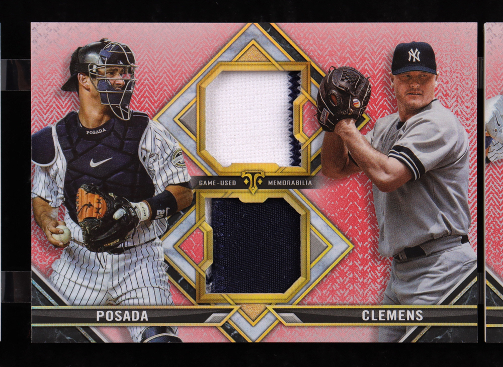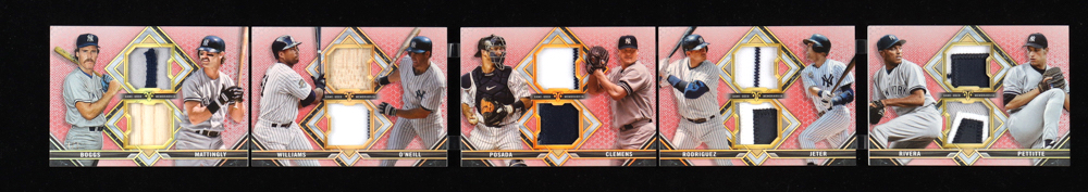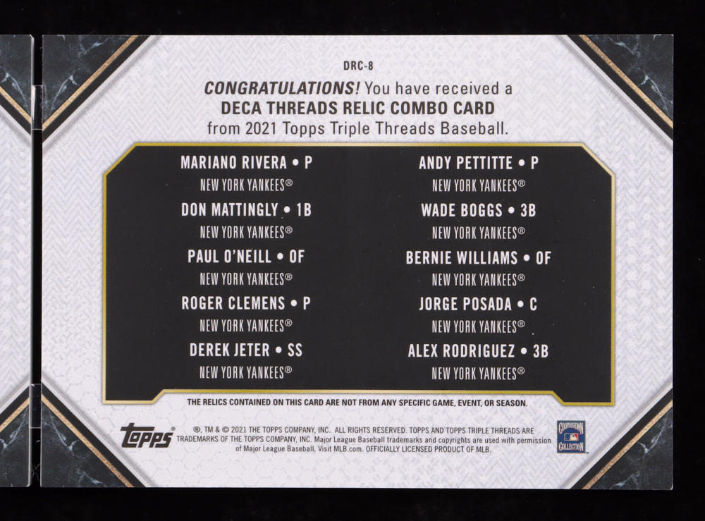 Alex Rodriguez / Wade Boggs / Don Mattingly / Andy Pettitte / Paul O'Neill / Bernie Williams / Jorge Posada / Roger Clemens / Derek Jeter / Mariano Rivera 2021 Topps Triple Threads Deca Relic Combo Ruby #DRC8 #1/1