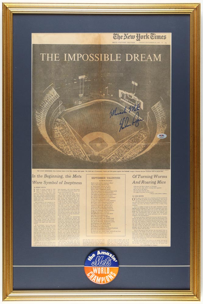Nolan Ryan Signed Original 1969 NY Times World Series Miracle Mets Clinch Day Newspaper Inscribed “Miracle Mets” (PSA)