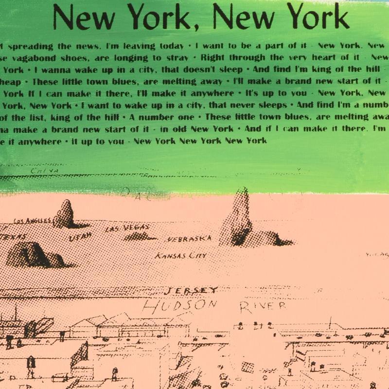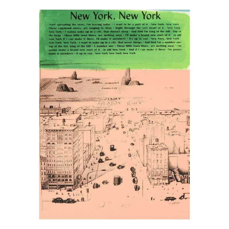 "New York, New York" is a one-of-a-kind hand-pulled silkscreen and mixed media painting on canvas by Ringo (Daniel Funes). This piece is hand signed by the artist and measures approx. 14" x 16" (image). Please note: the signature for this piece is located within the right border and will be outside the display image when framed; see photo for reference.