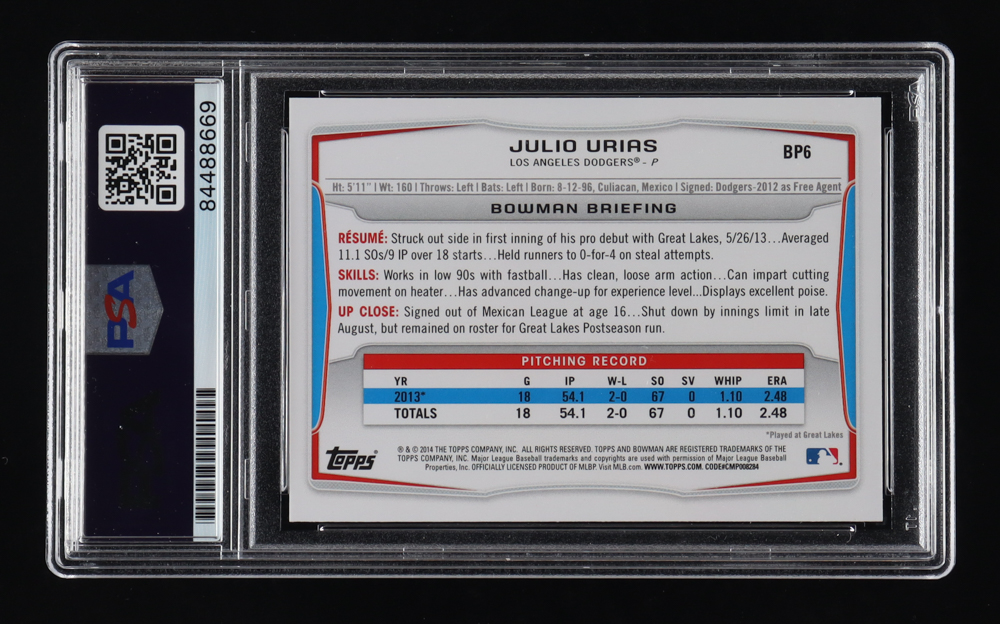 Julio Urias Signed 2014 Bowman Prospects #BP6 RC (PSA)