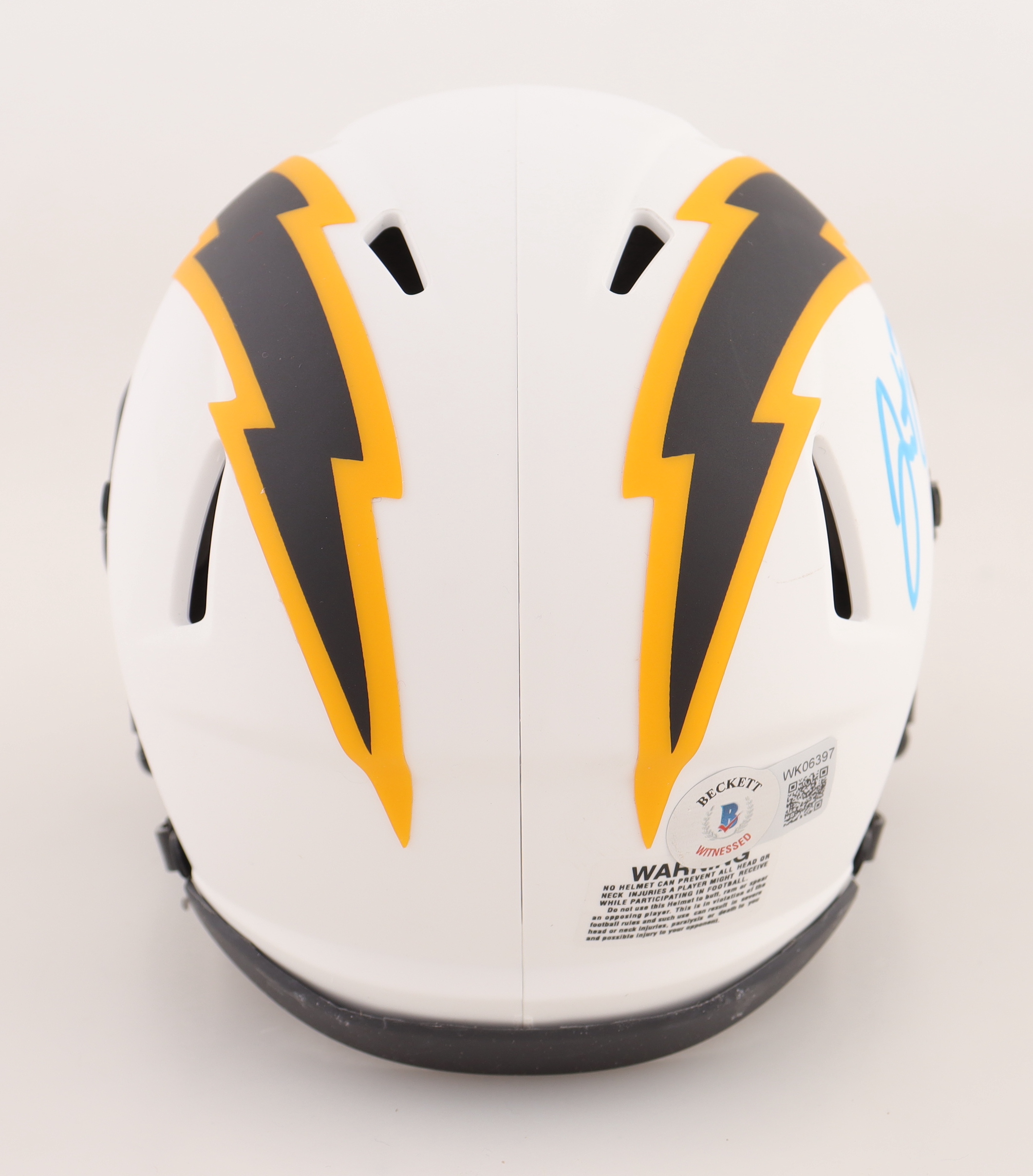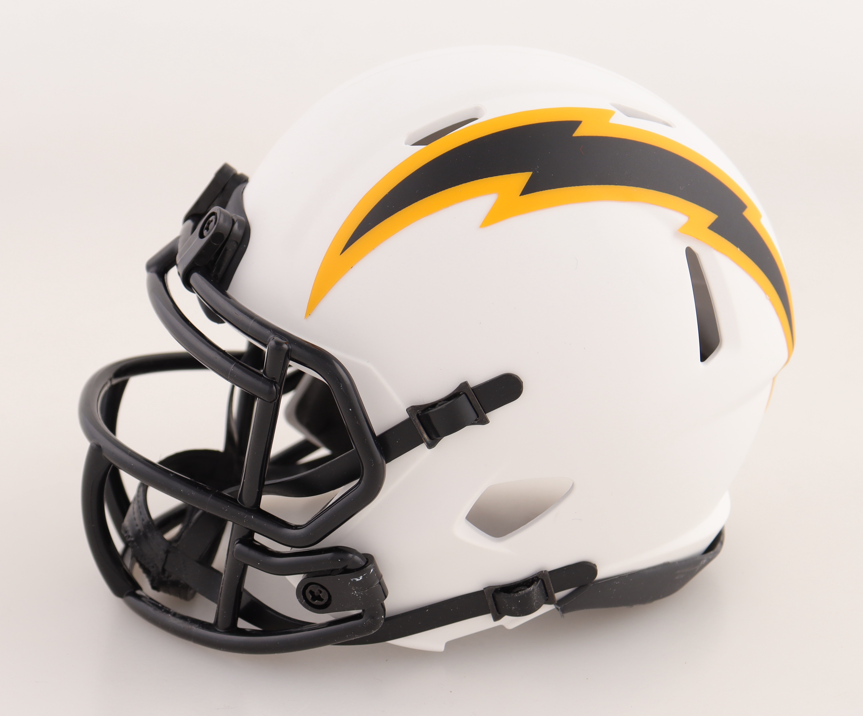 Riddell Los Angeles Chargers lunar eclipse alternate speed mini helmet has been hand-signed by Justin Herbert.