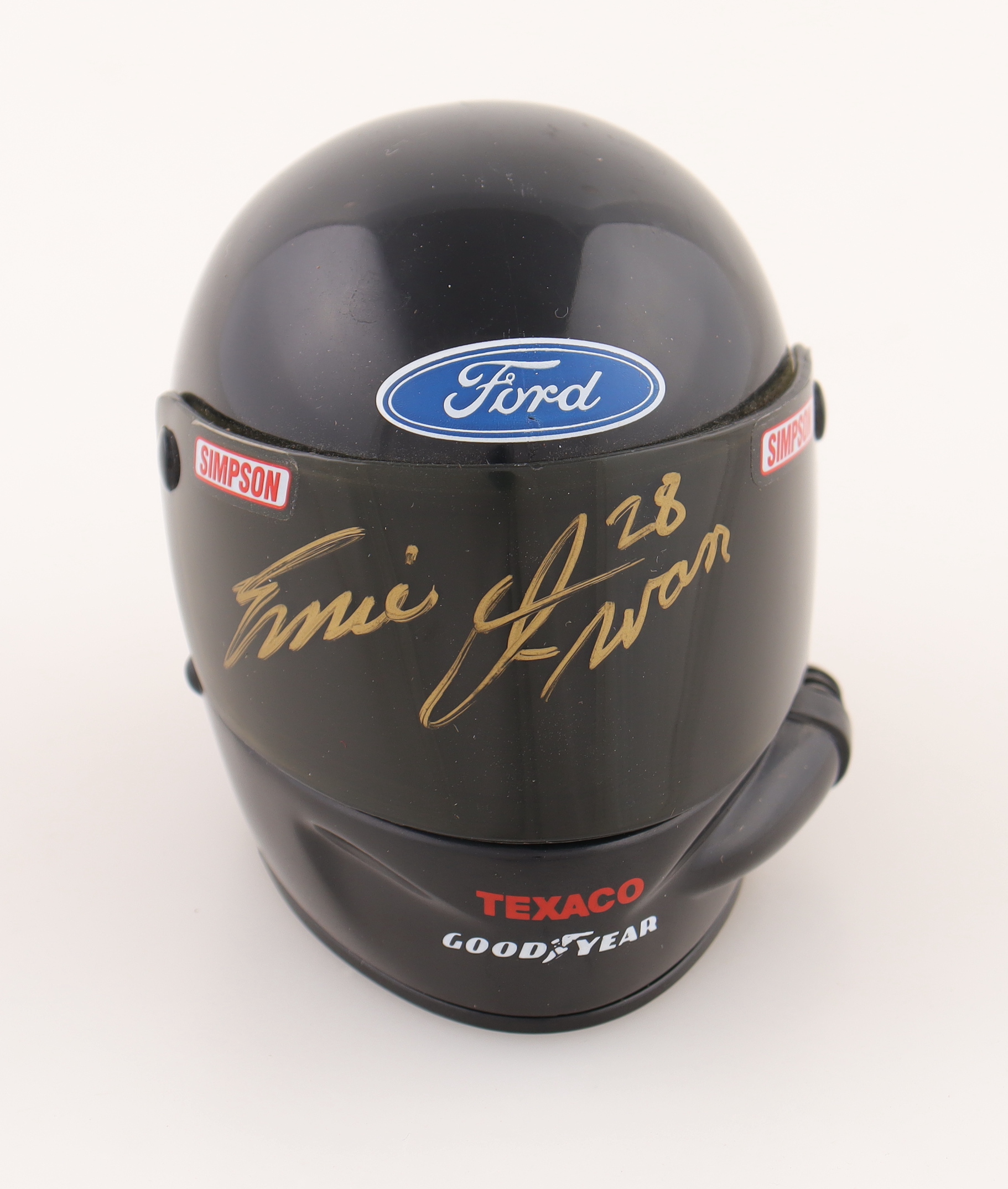 Mini NASCAR helmet has been hand-signed by Ernie Irvan.