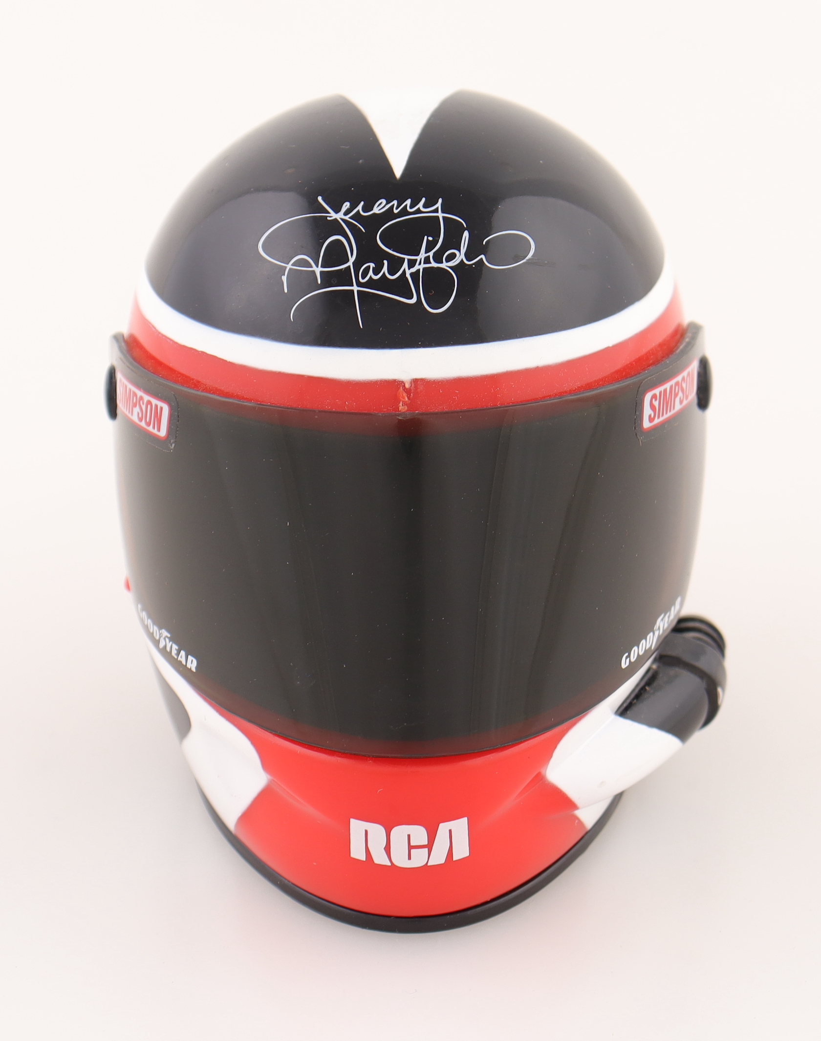 Mini NASCAR helmet has been hand-signed by Jeremy Mayfield.