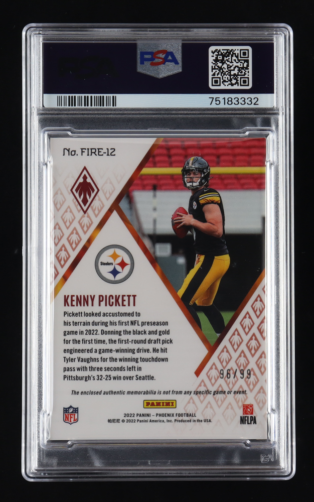 Kenny Pickett 2022 Panini Phoenix Fire Fabrics #12 RC #96/99 (PSA 8)