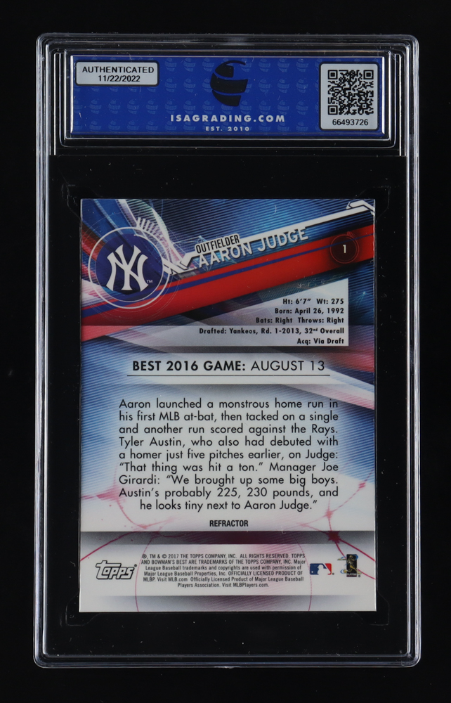 Aaron Judge 2017 Bowman's Best Refractors #1 RC (ISA 10)