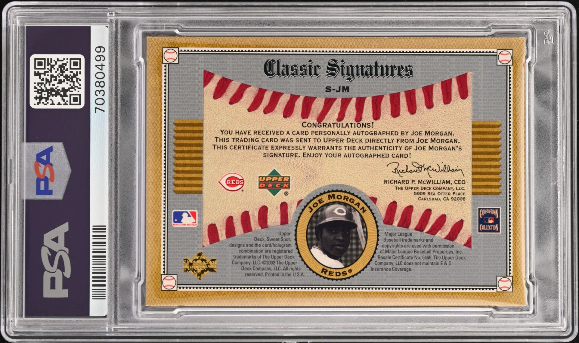 Joe Morgan 2002 Sweet Spot Classics Signatures #SJM (PSA 8 | Auto 8)