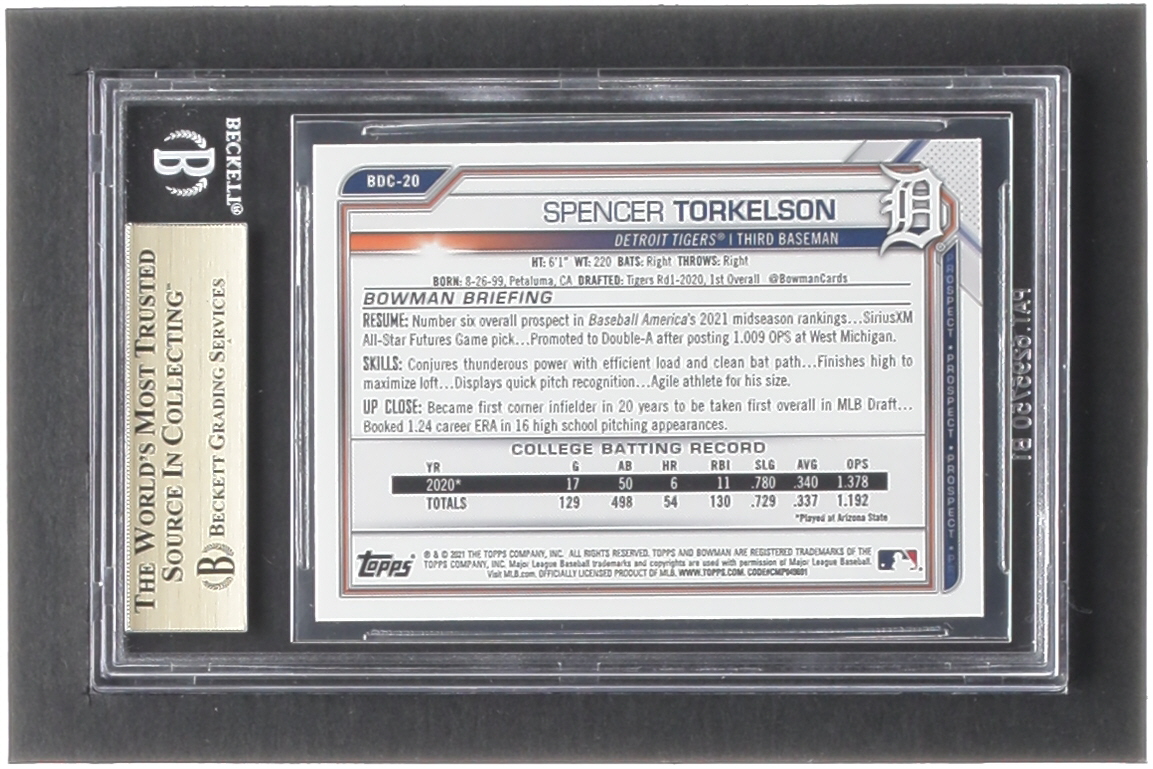 Spencer Torkelson 2021 Bowman Chrome Draft Sapphire #BDC20 (BGS 9.5)