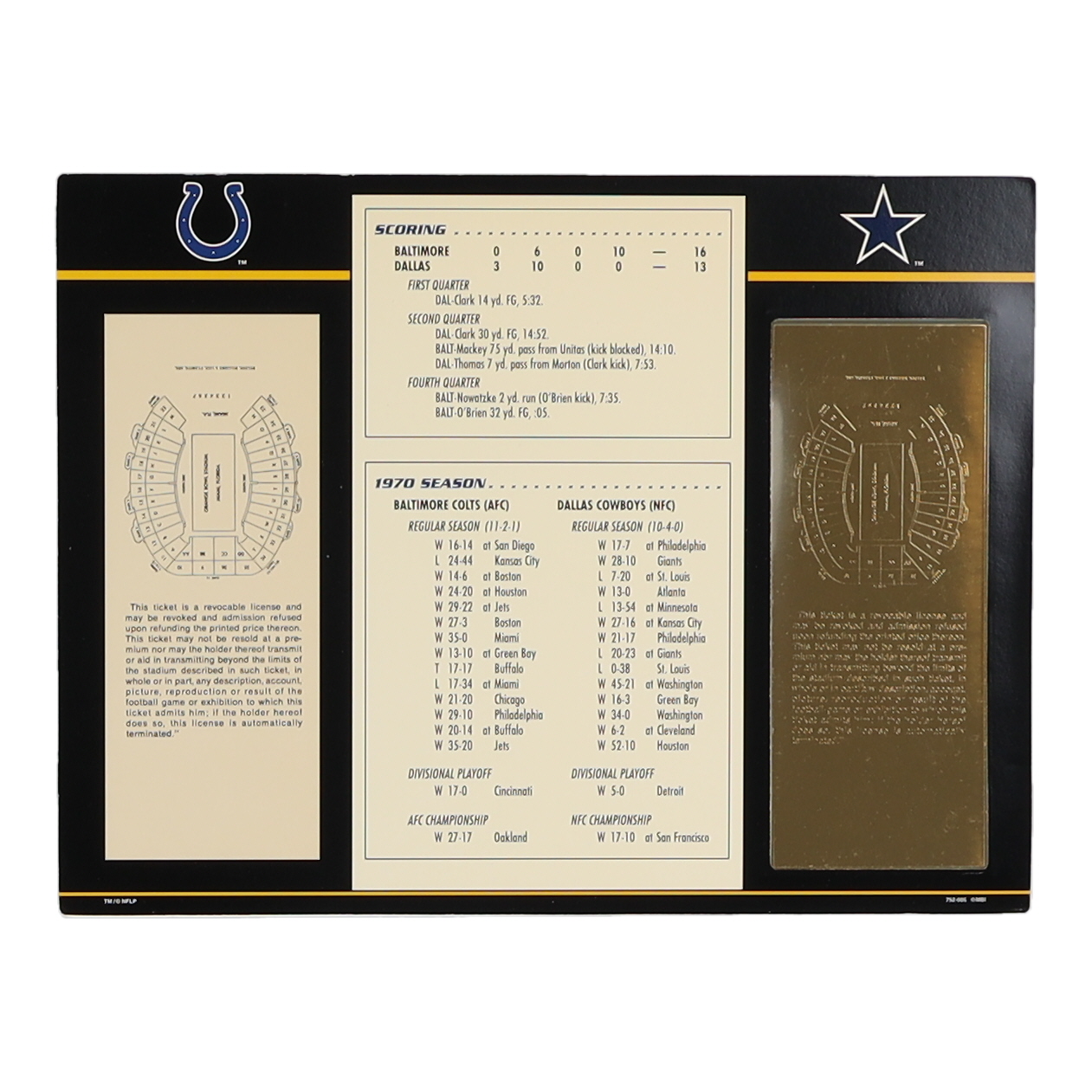 Super Bowl V Commemorative 9x12 Score Card Display with 23kt Gold Ticket