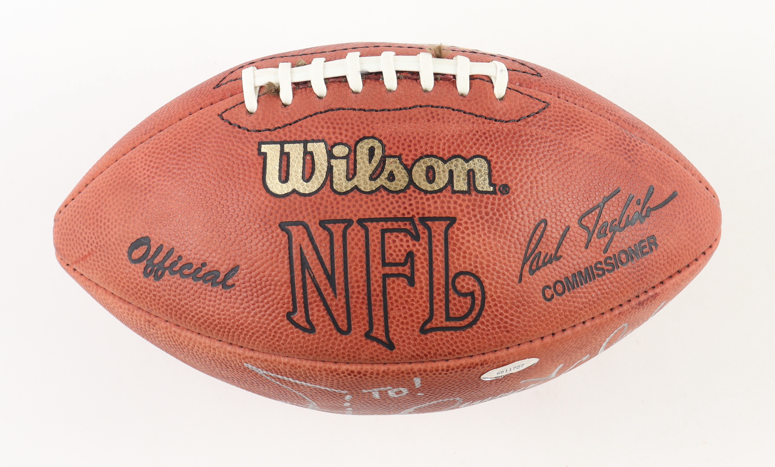Wilson NFL Official football has been hand-signed and inscribed by Dwight Clark (D. 2018). Please note, the football does not fully inflate.
