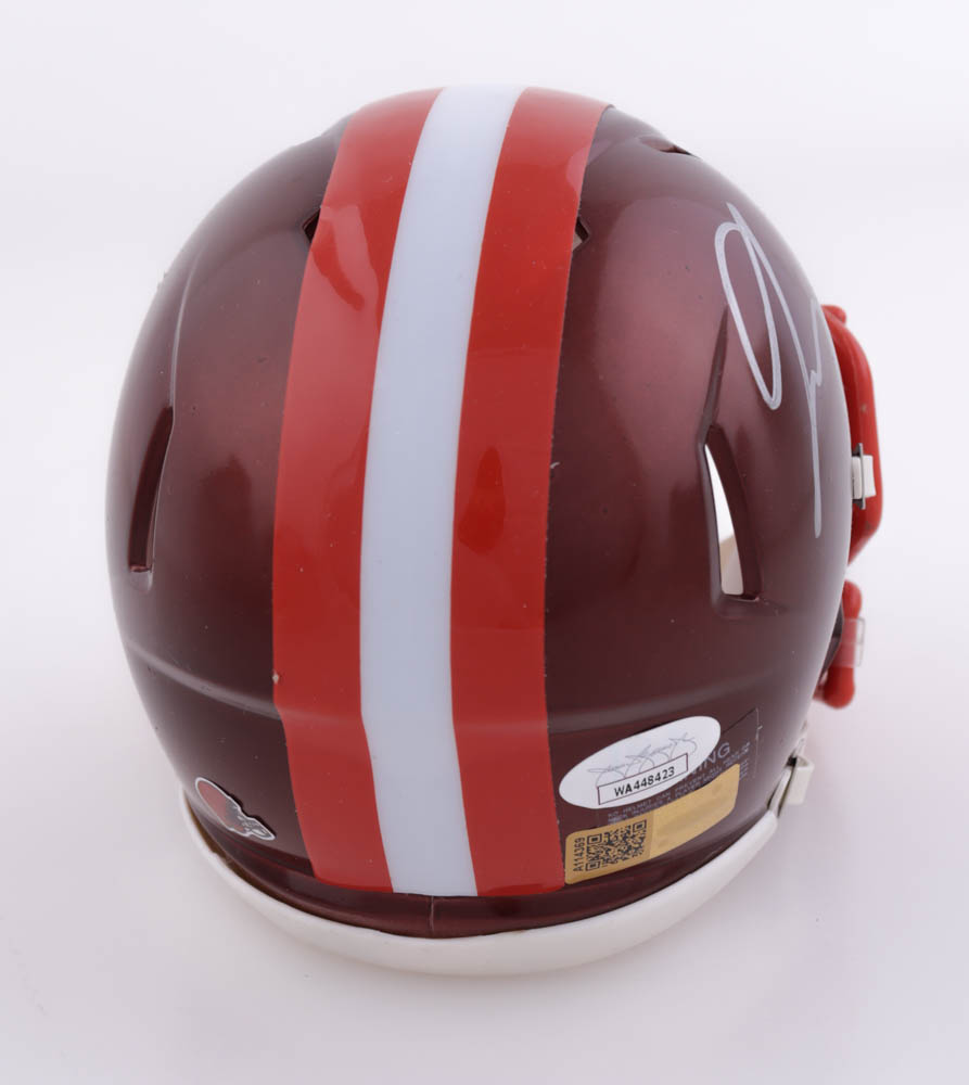Riddell Cleveland Browns Flash Alternate Speed mini helmet. Hand-signed by Jerome Ford.