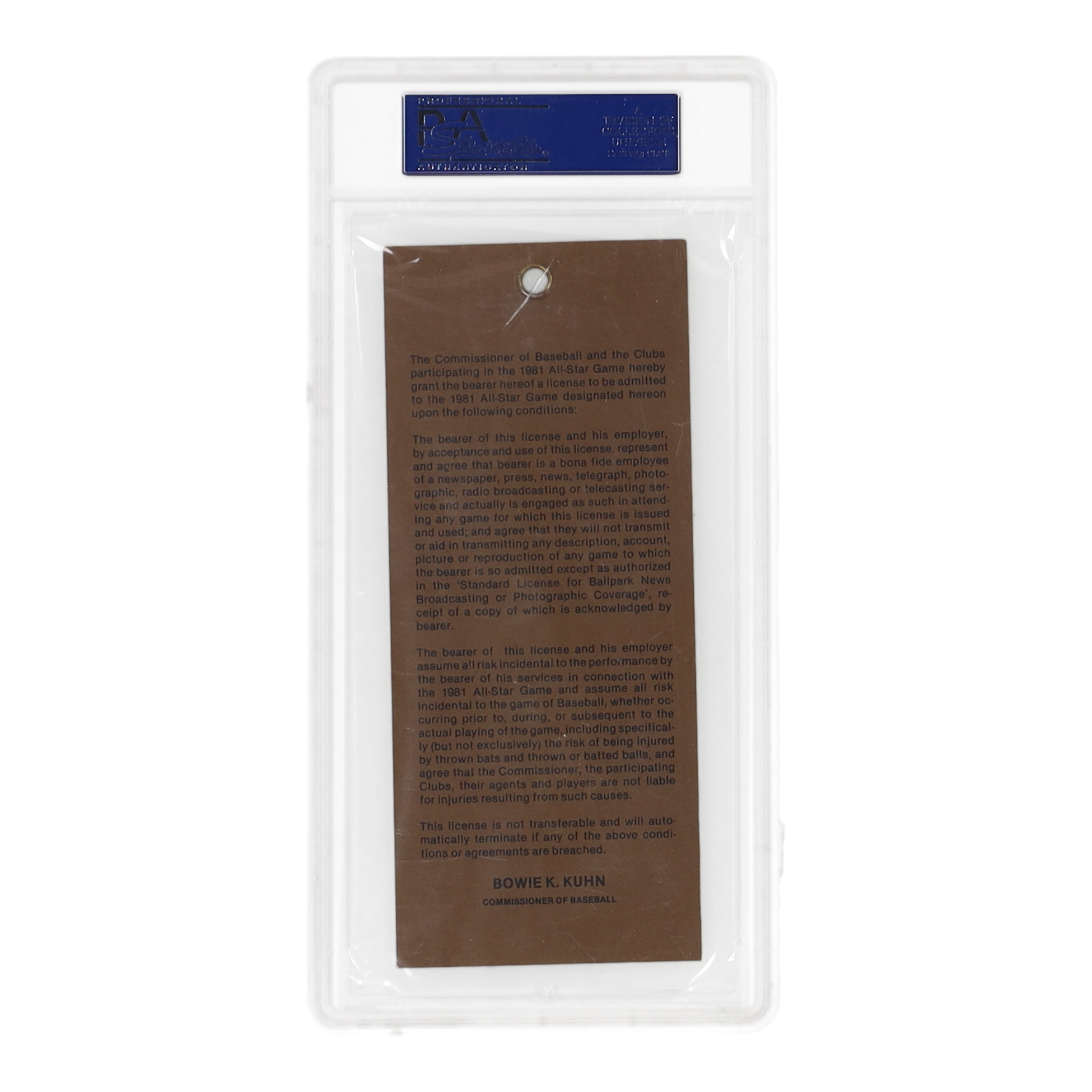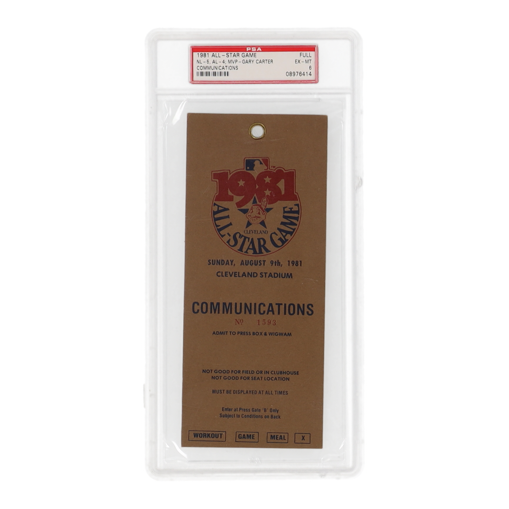 1981 All-Star Game Communications Pass has been graded PSA 6. See photos for condition of the pass.