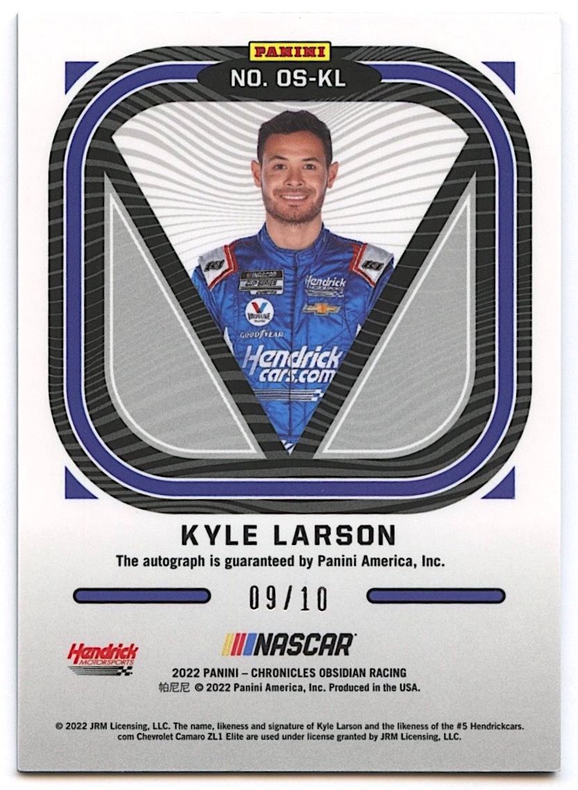Kyle Larson 2022 Panini Chronicles Obsidian Signatures #1 Autograph Electric Etch Pink #09/10