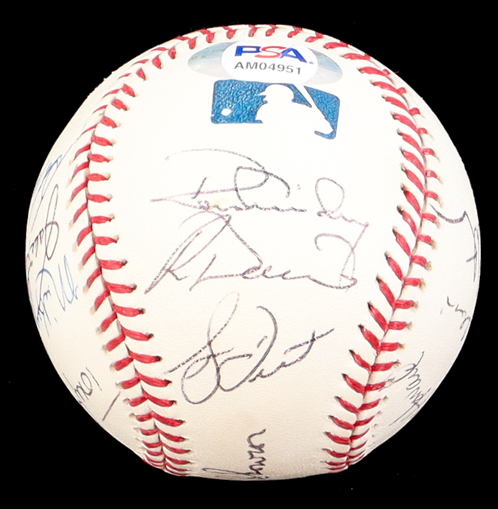 Yankees Old-Timers OML Baseball Signed By (13) with Tony Kubek, Chris Chambliss, Bucky Dent & Display Case (PSA)
