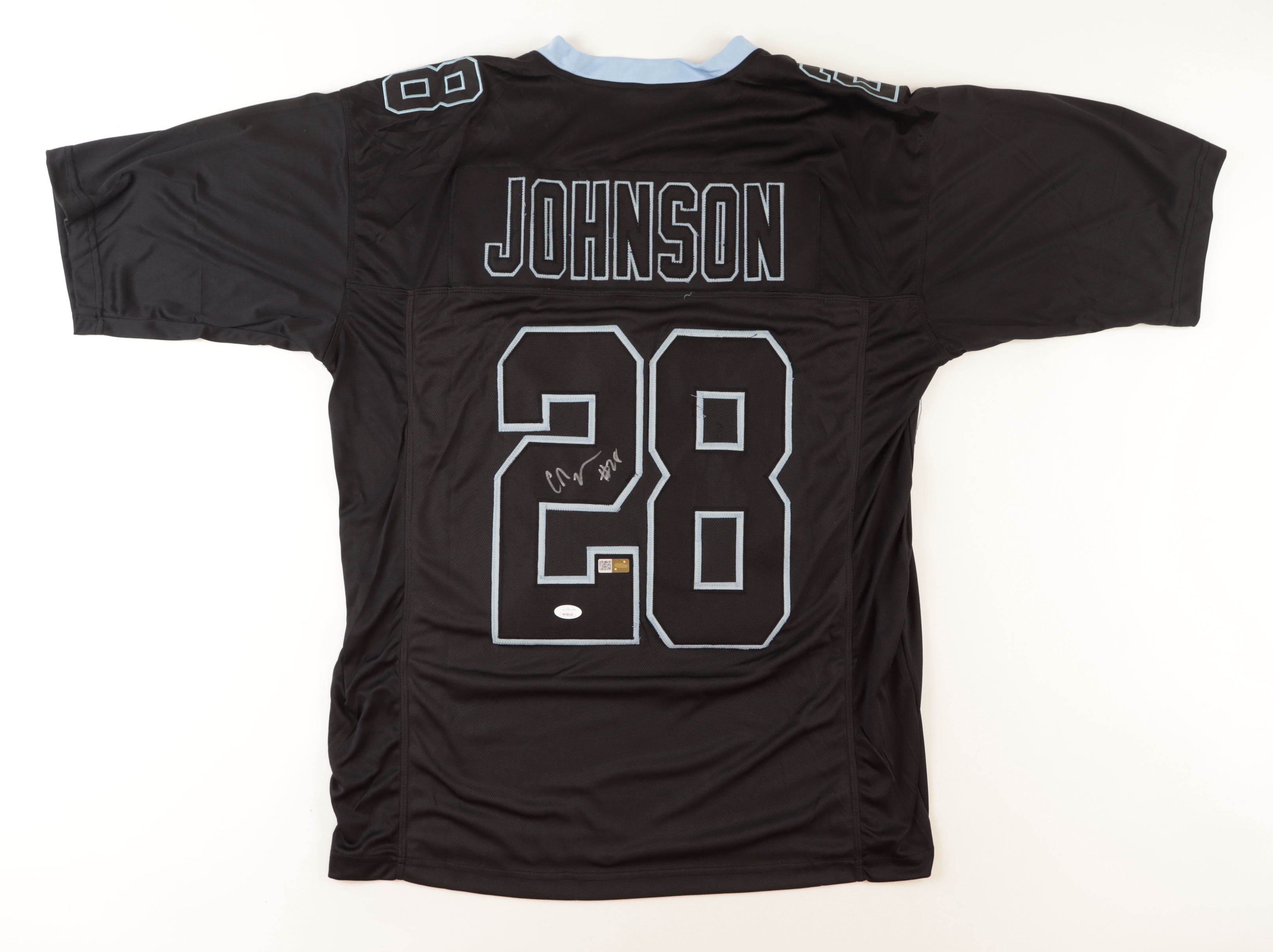 Custom jersey. Everything is sewn on, size XL. Hand-signed by Chris Johnson.