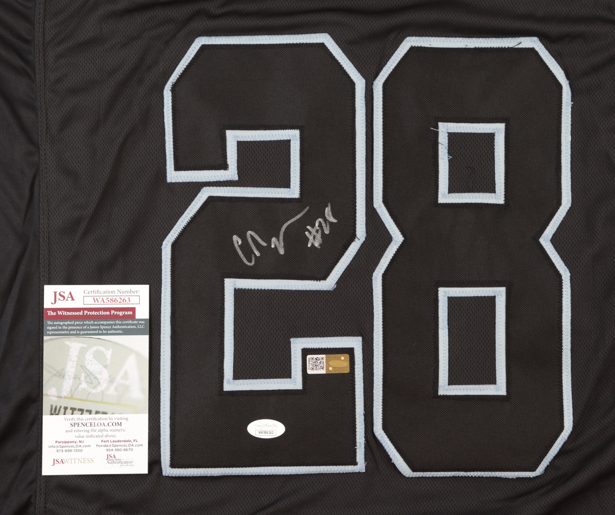 The autograph includes an official James Spence Authentication (JSA) hologram and matching COA as well as an official Chris Johnson player hologram for authenticity purposes. The signing of this item was witnessed by JSA.