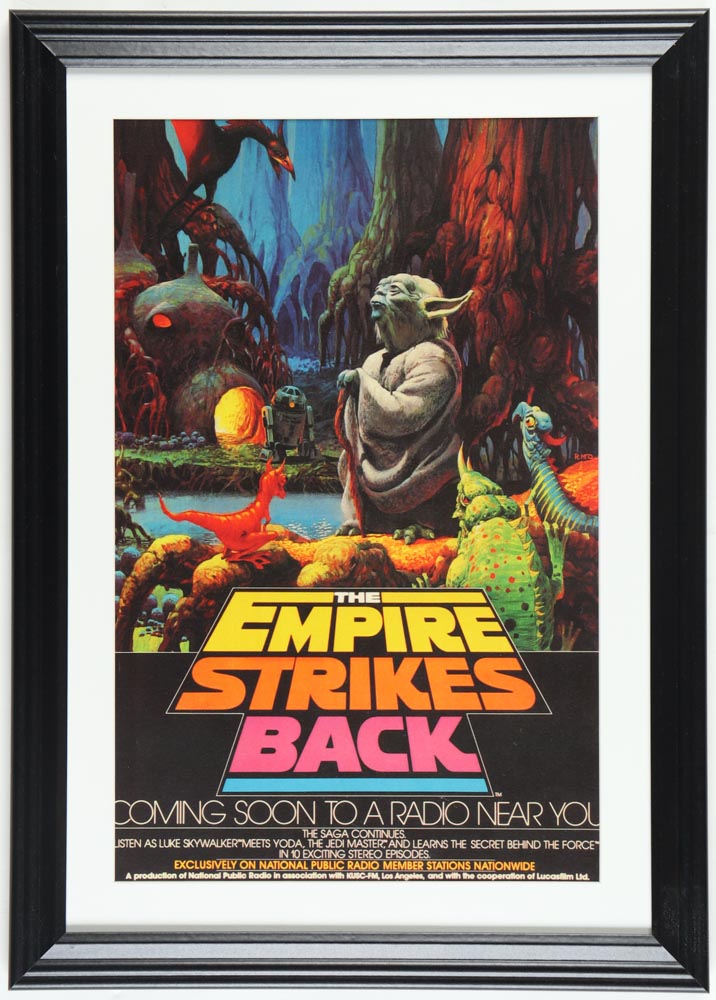 Custom frame measures 15" x 21" in size and features a 1982 radio promotional print for "Star Wars: The Empire Strikes Back."
