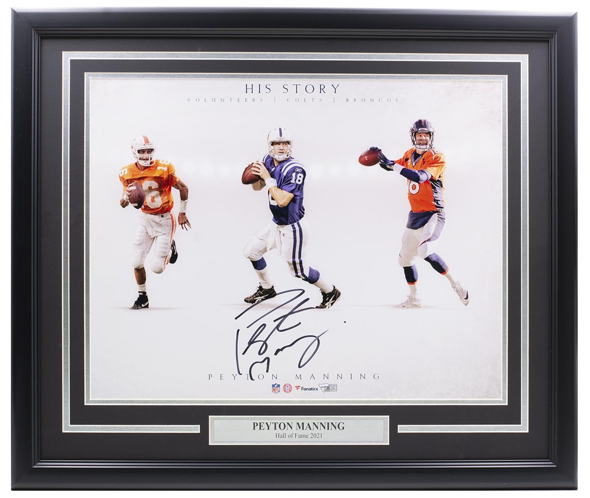 Custom frame measures 22" x 27" in size and features a photo that has been hand-signed by Peyton Manning (Indianapolis Colts, HOF).