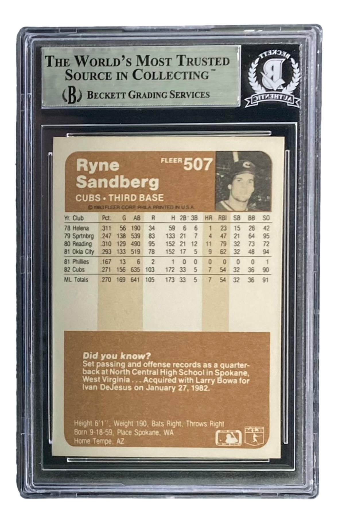 Ryne Sandberg Signed 1983 Fleer #507 RC (BGS)