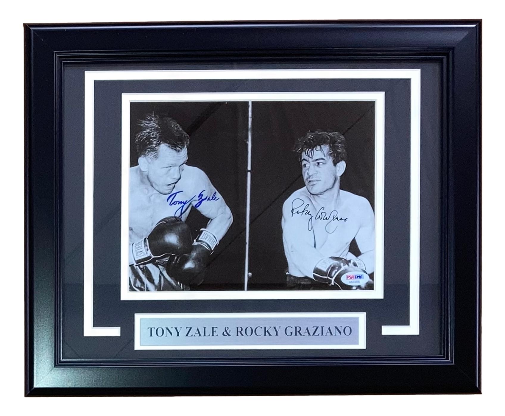 Rocky Graziano & Tony Zale Signed Custom Framed Photo Display (PSA)