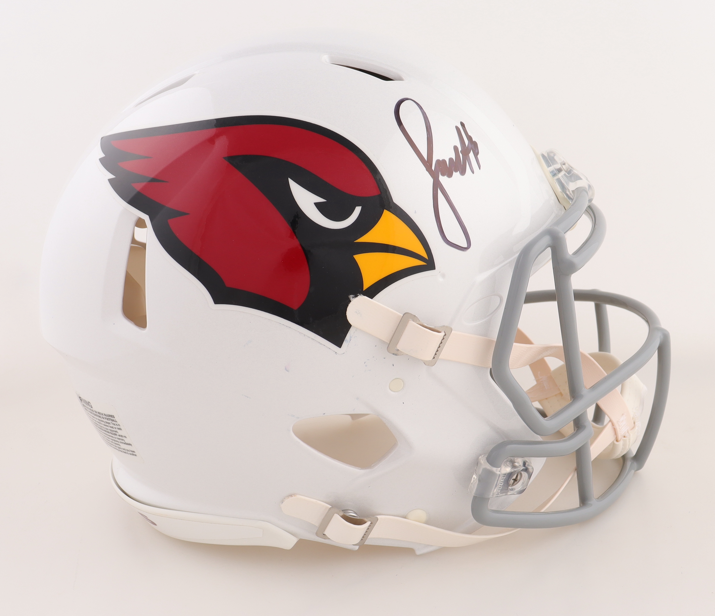 Riddell Arizona Cardinals full-size authentic on-field speed helmet. Hand-signed by Larry Fitzgerald.