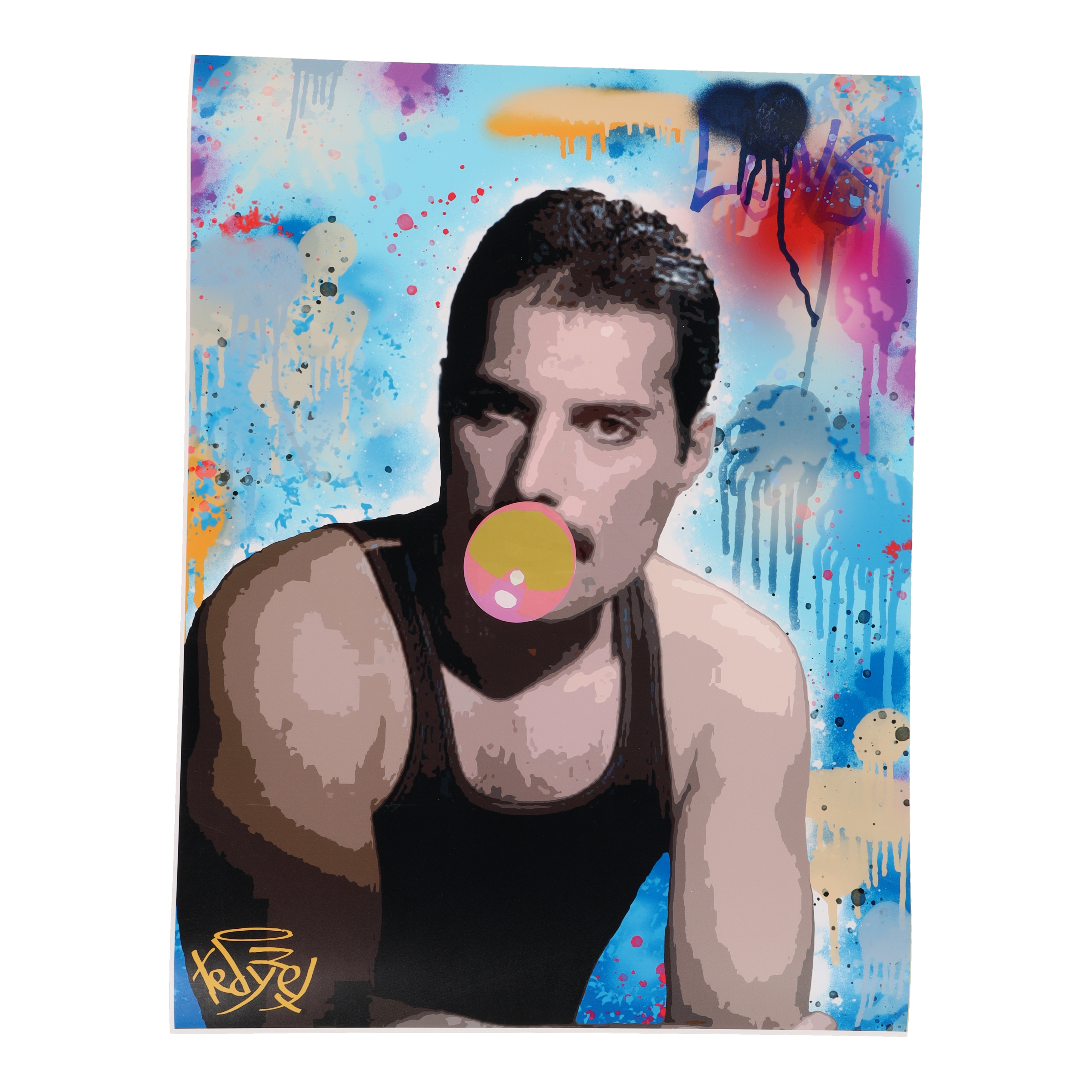 Tadas Zaicikas Signed "Graffiti Wall_Freddie Mercury & Rose Balloon" 18x24 Original Painting on Paper (Zaicikas)