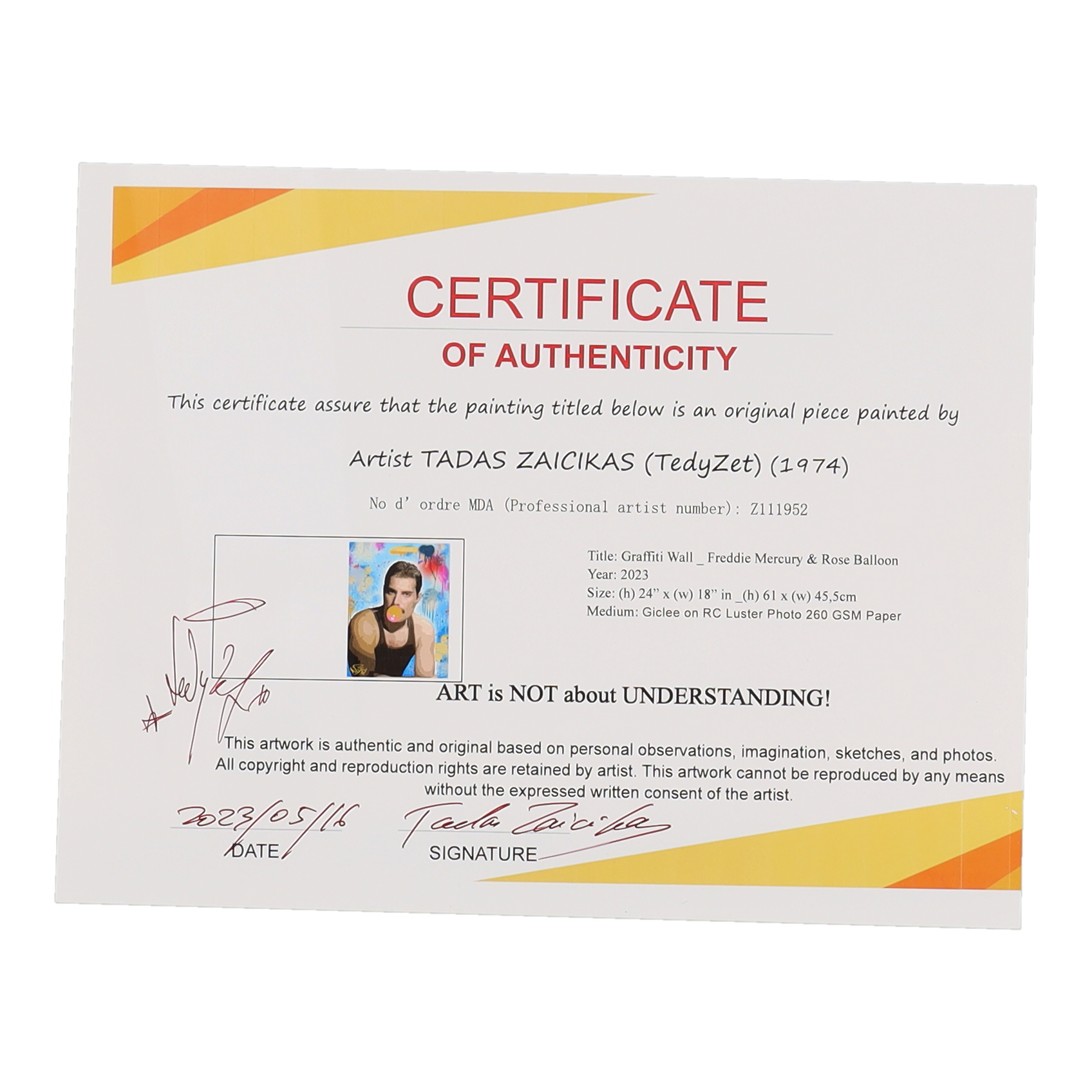 Giclee on RC Luster Photo 260 GSM mixed media paper has been hand-signed by the artist, Tadas Zaicikas (TedyZet).