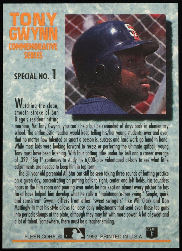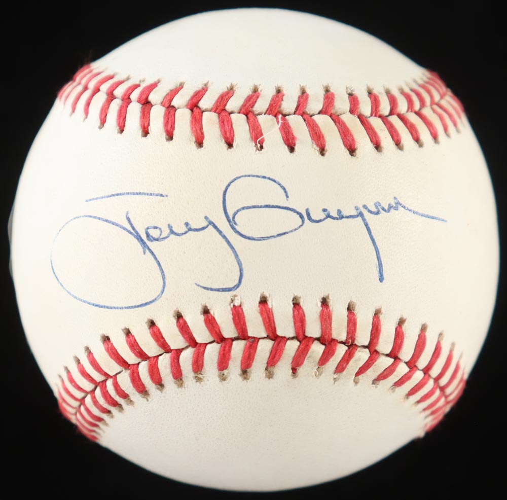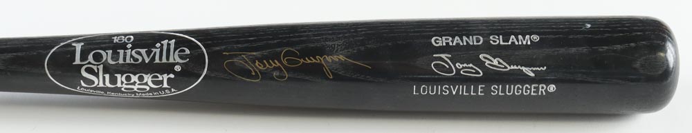 Louisville Slugger Player Model Grand Slam Model baseball bat and Official National League baseball display measures approximately 47" in length and both the baseball bat and ONL baseball have been hand-signed by Tony Gwynn (D. 2014, San Diego Padres, HOF). The display also includes a 1992 Ultra Gwynn #S1 Tony Gwynn trading card, unsigned. Please see photos for further details regarding the condition of the display.