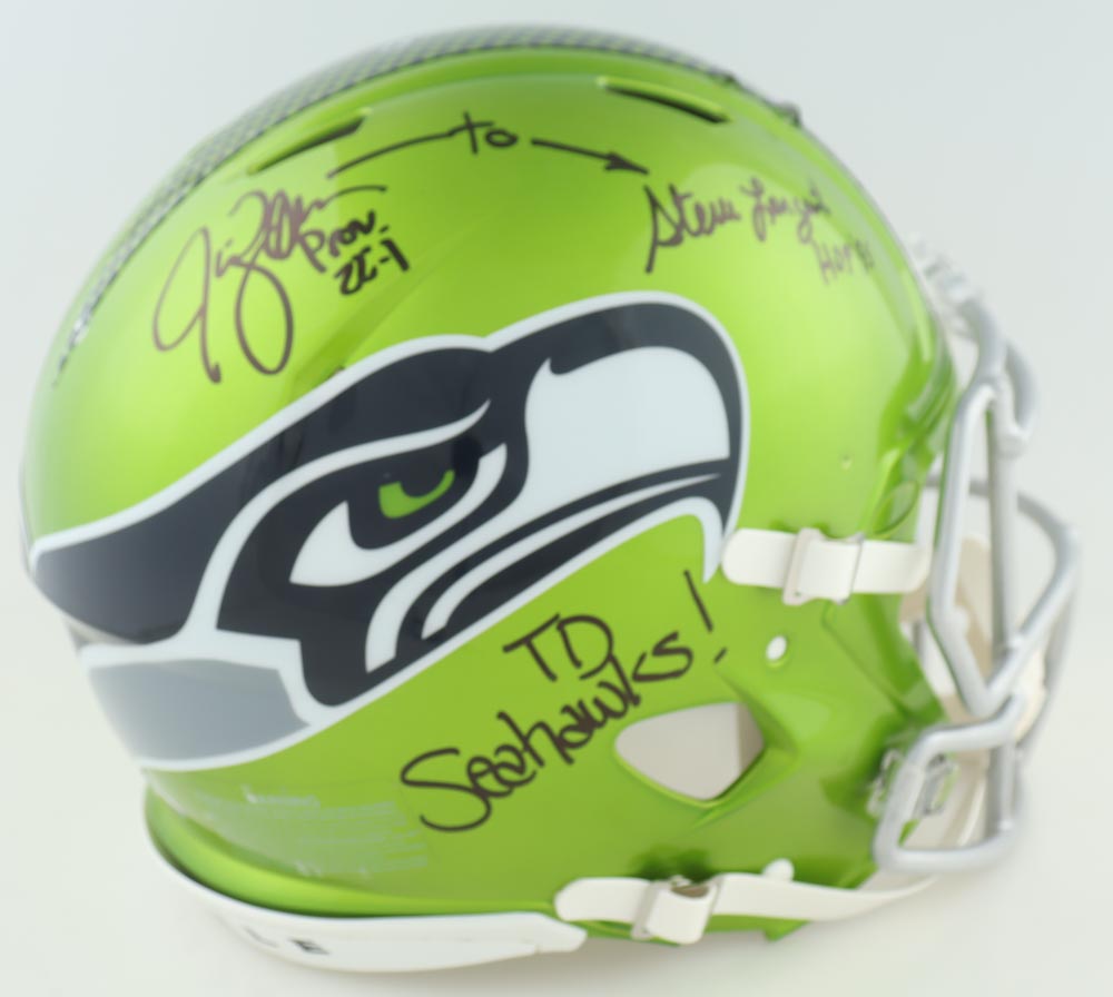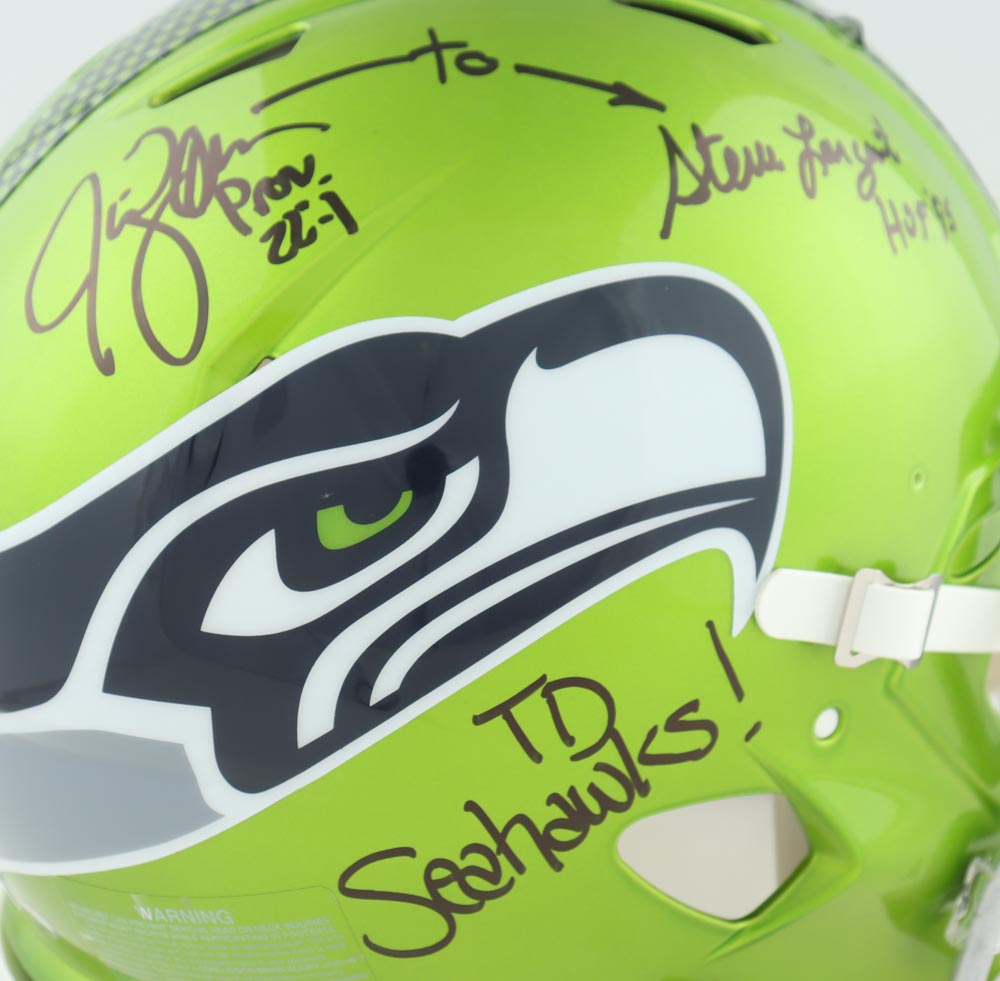 Steve Largent & Jim Zorn Signed Seahawks Full-Size Authentic On-Field Flash Alternate Speed Helmet Inscribed "HOF '95" & "TD Seahawks!" (Mill Creek Sports)