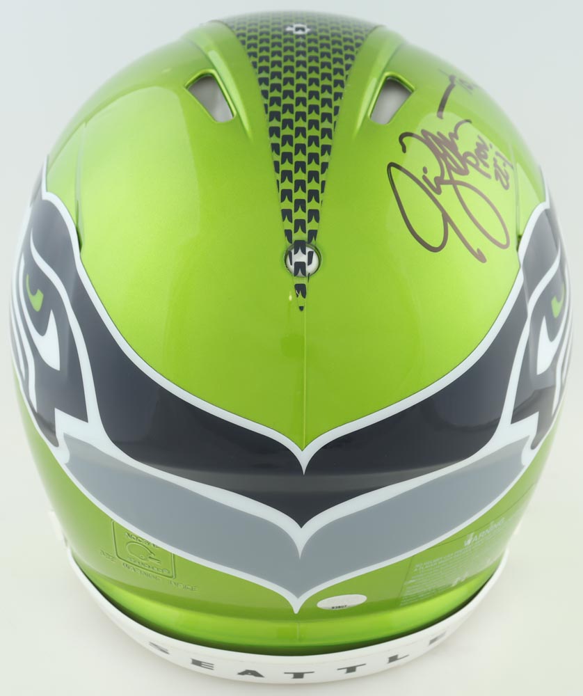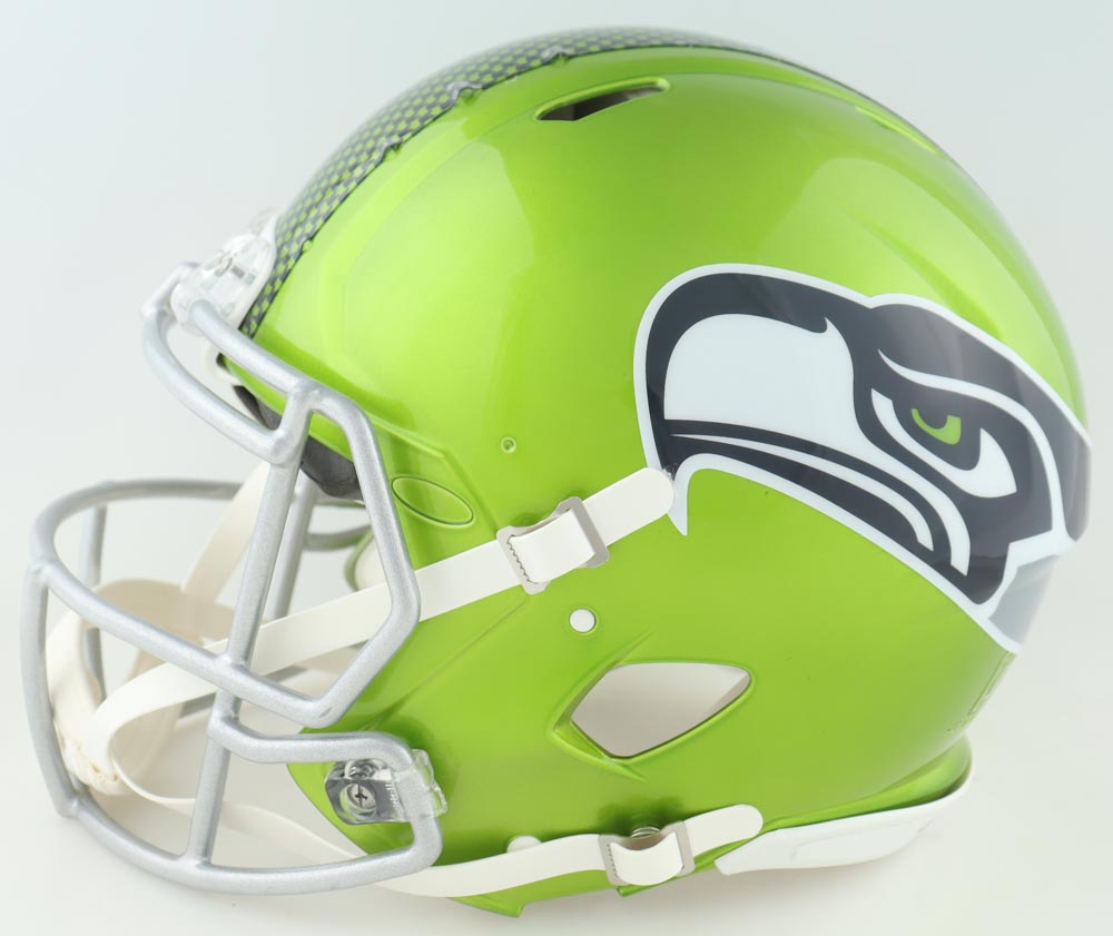 Riddell Seattle Seahawks Full-Size Authentic On-Field Flash Alternate Speed Helmet. Hand-signed and inscribed by Steve Largent (HOF) and Jim Zorn.