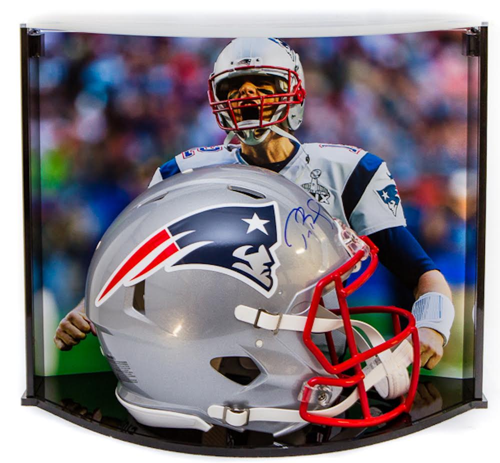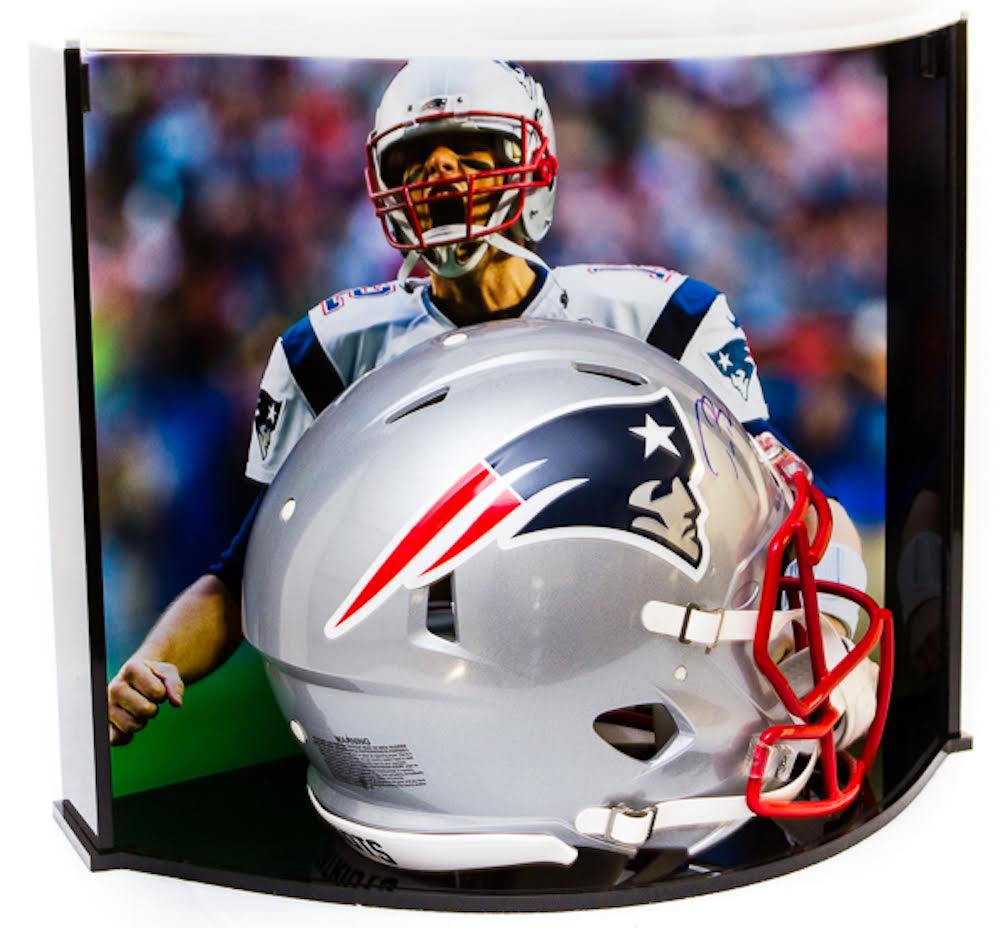 Game Day Legends is proud to bring to you ’The Curve' display case. This unique memorabilia display case will enhance anyone's personal collectibles showroom. With a dynamic appearance thanks to its sleek curved design, this case beautifully highlights your autographed item. Within the curve display is a custom 16 x 20 action photograph. Due to the curved nature of this display, the image is visible from all angles of the display case and perfectly accentuates the signed helmet making this the ultimate collectible and the safest way to display your collectible. You must see this to believe just how beautiful it is.