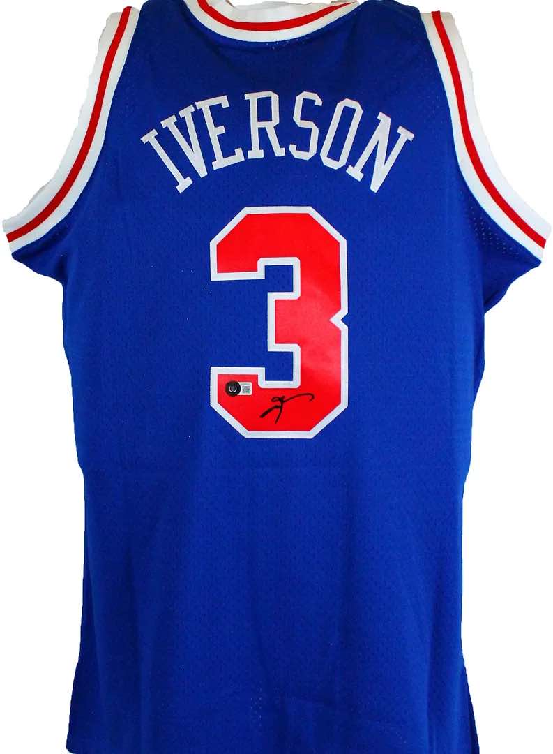 Mitchell & Ness jersey. Everything is sewn on, size XL. Hand-signed by Allen Iverson (Philadelphia 76ers, HOF).