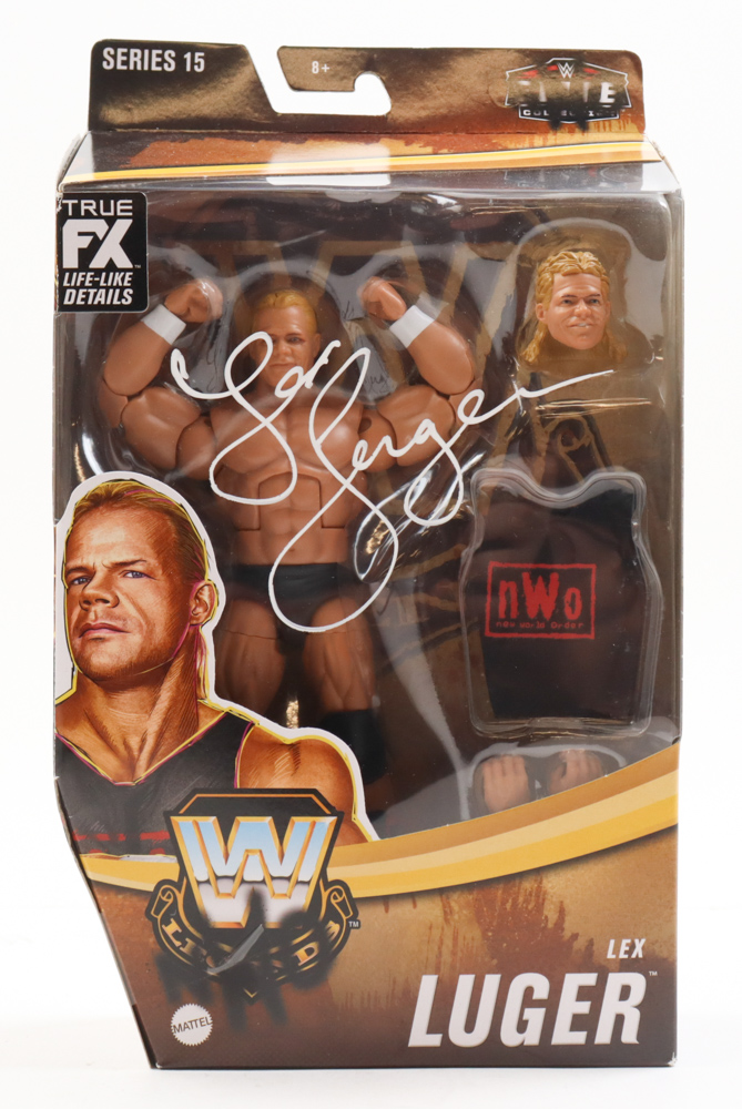 2020 WWE Elite Collection Series 15 action figure. Hand-signed on the packaging by Lex Luger (HOF). Please note, side of packaging has some minor damage.
