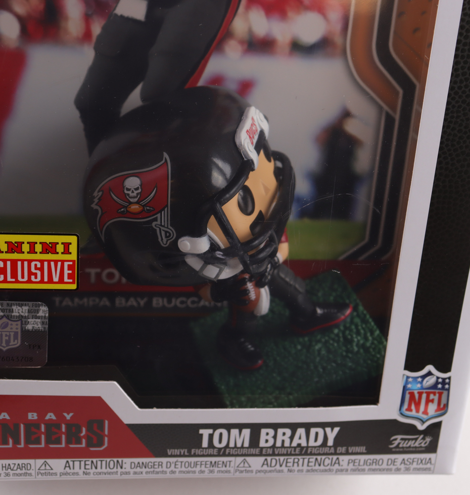 Figure measures approximately 4" tall and comes in the original box and features Tom Brady (Tampa Bay Buccaneers). Please note, there is scuffing on the packaging window and the funko is unsigned.