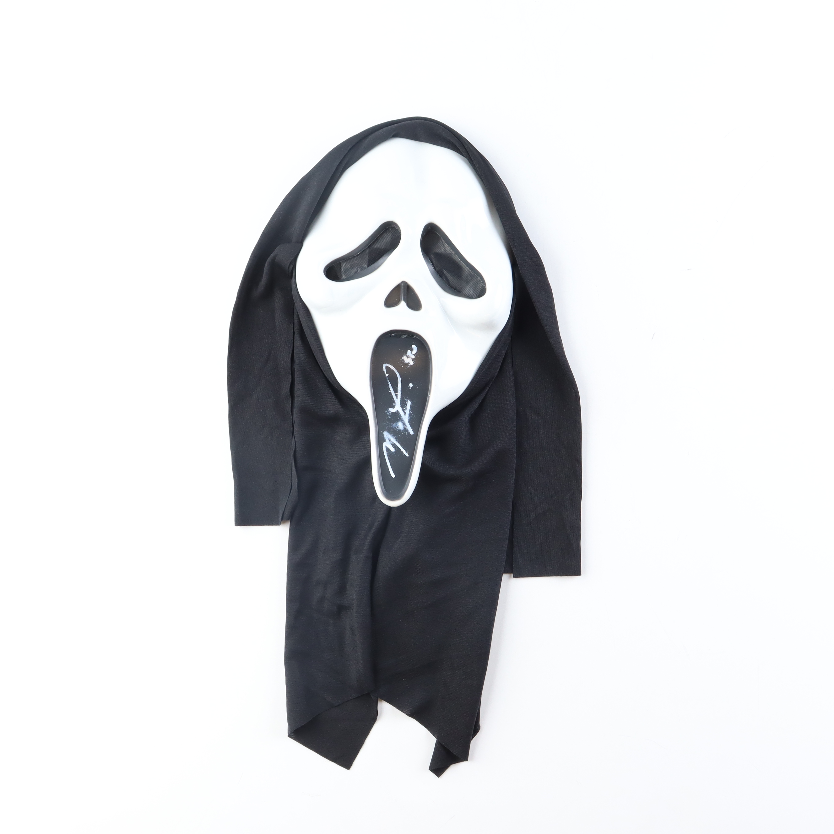"Scream" Ghostface mask has been hand-signed and inscribed by Matthew Lillard (Stu Macher). Please note, the autograph and inscription are smudged.