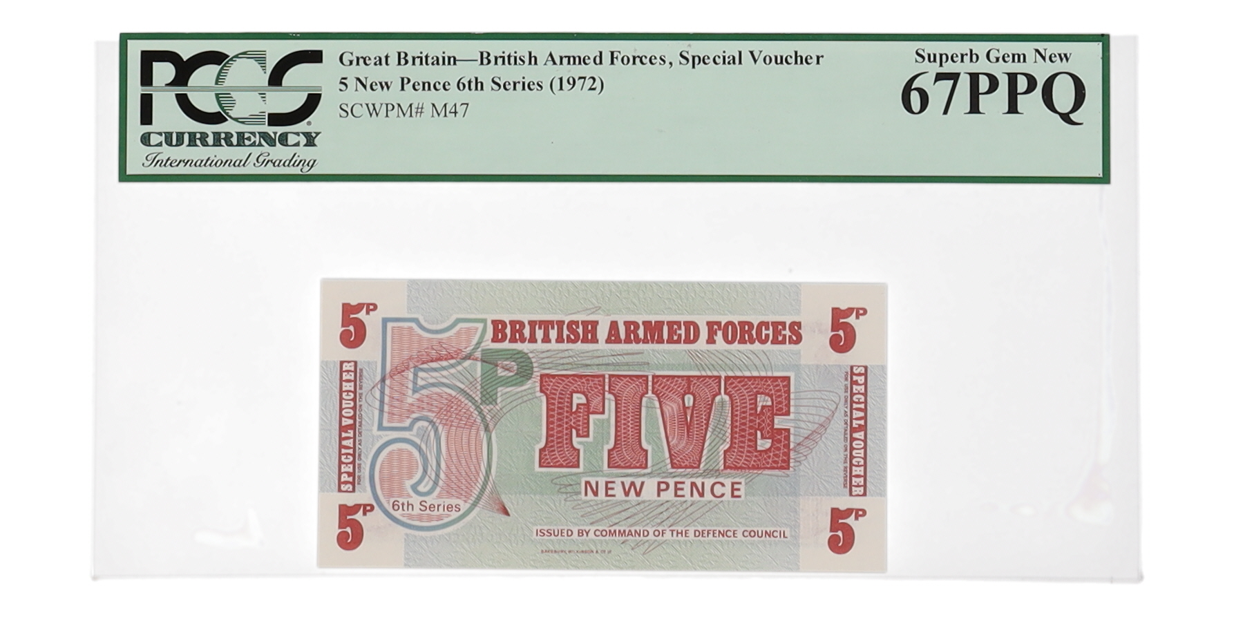 1972 Great Britain 5 New Pence British Armed Forces Special Voucher (PMG Superb Gem New 67PPQ)