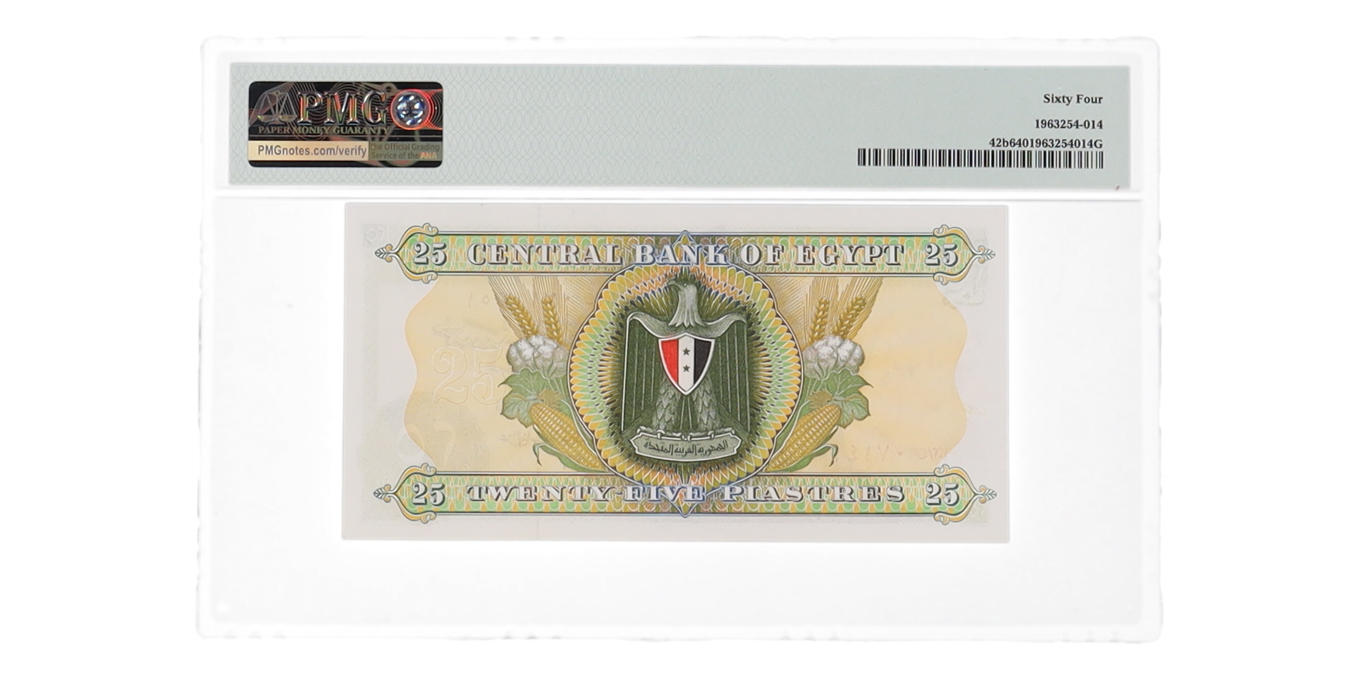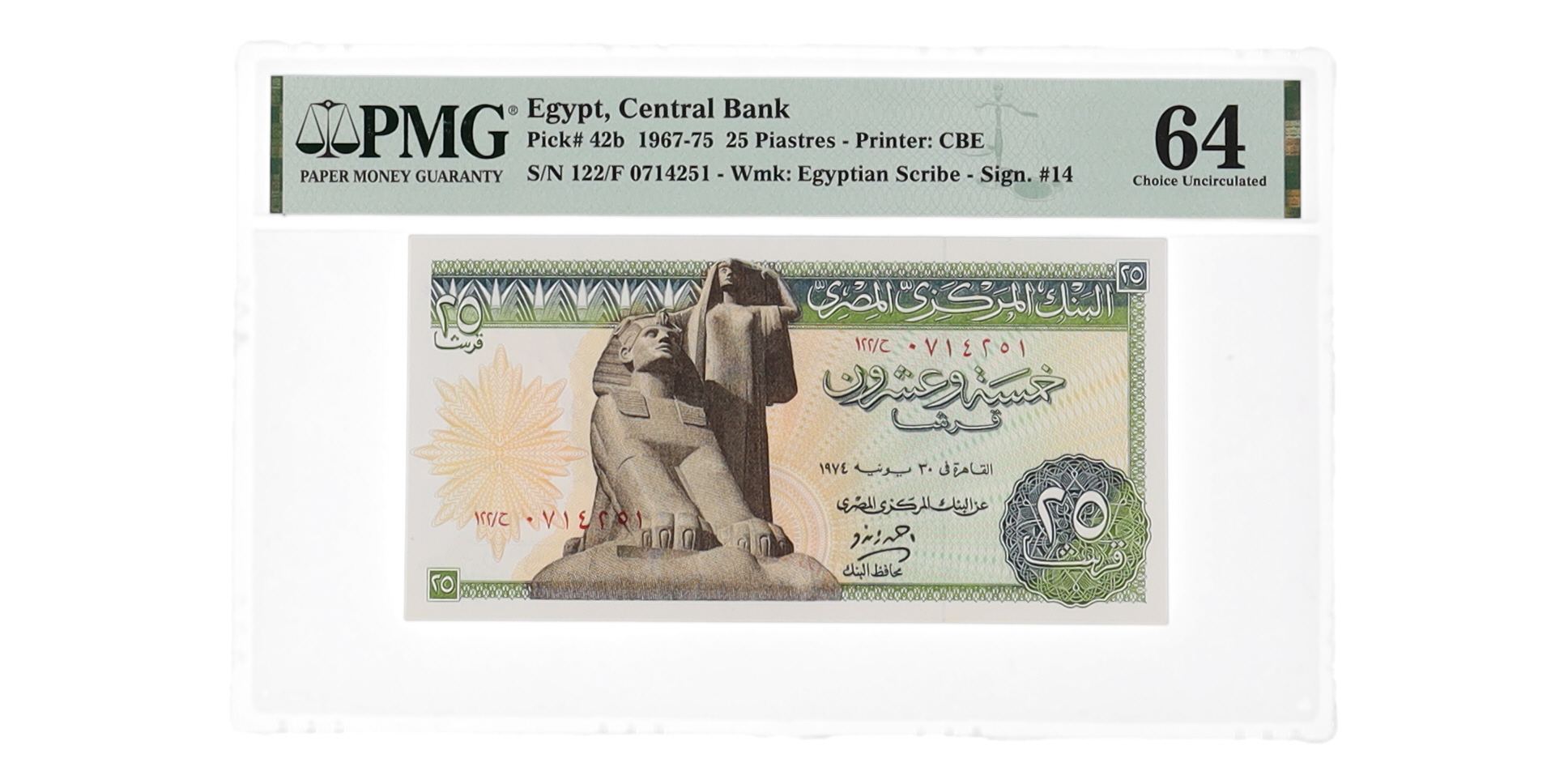 1967-75 Egypt 25 Piastres Central Banknote (PMG Choice Unc 64)