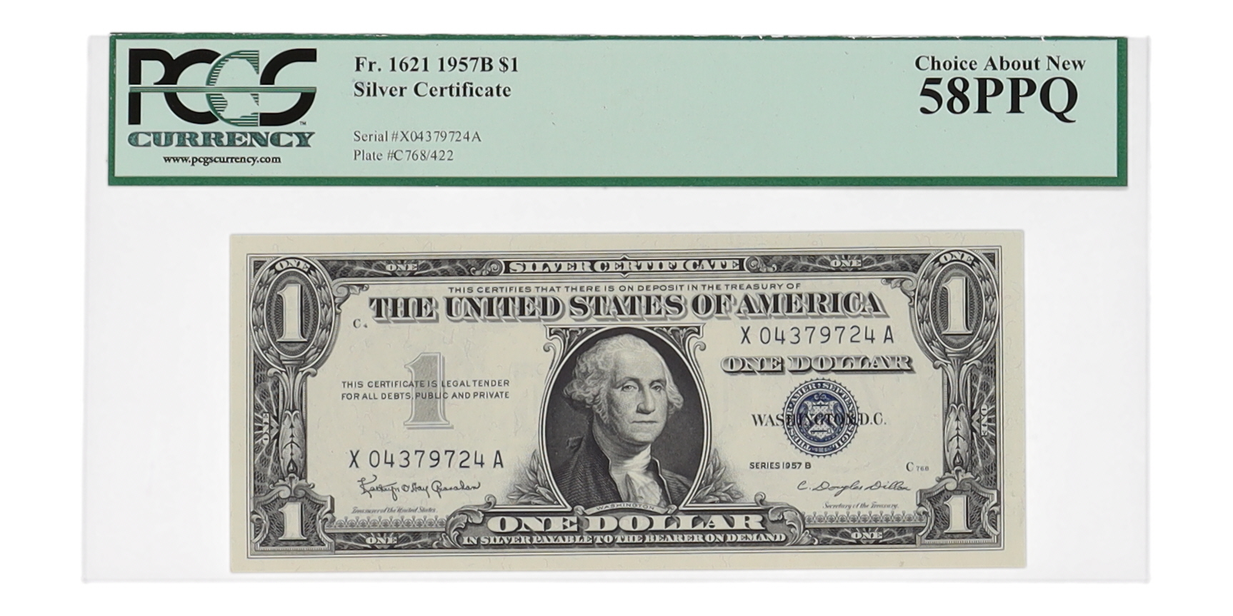 1957-B $1 One Dollar Blue Seal Silver Certificate (PCGS Choice About New 58PPQ)