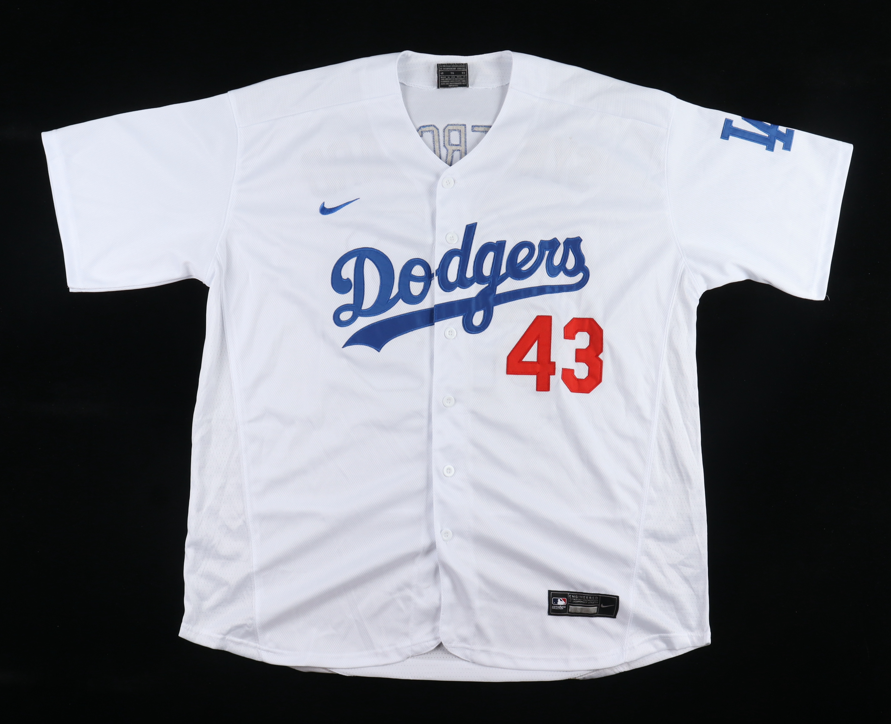 Nike jersey with everything sewn on, size 48. Hand-signed by Noah Syndergaard (Los Angeles Dodgers).