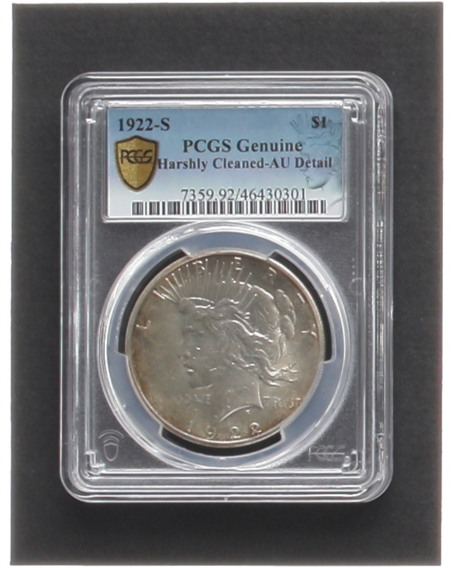 1922-S Peace Silver Dollar - Gold Shield - Harshly Cleaned-AU Detail (PCGS Genuine)