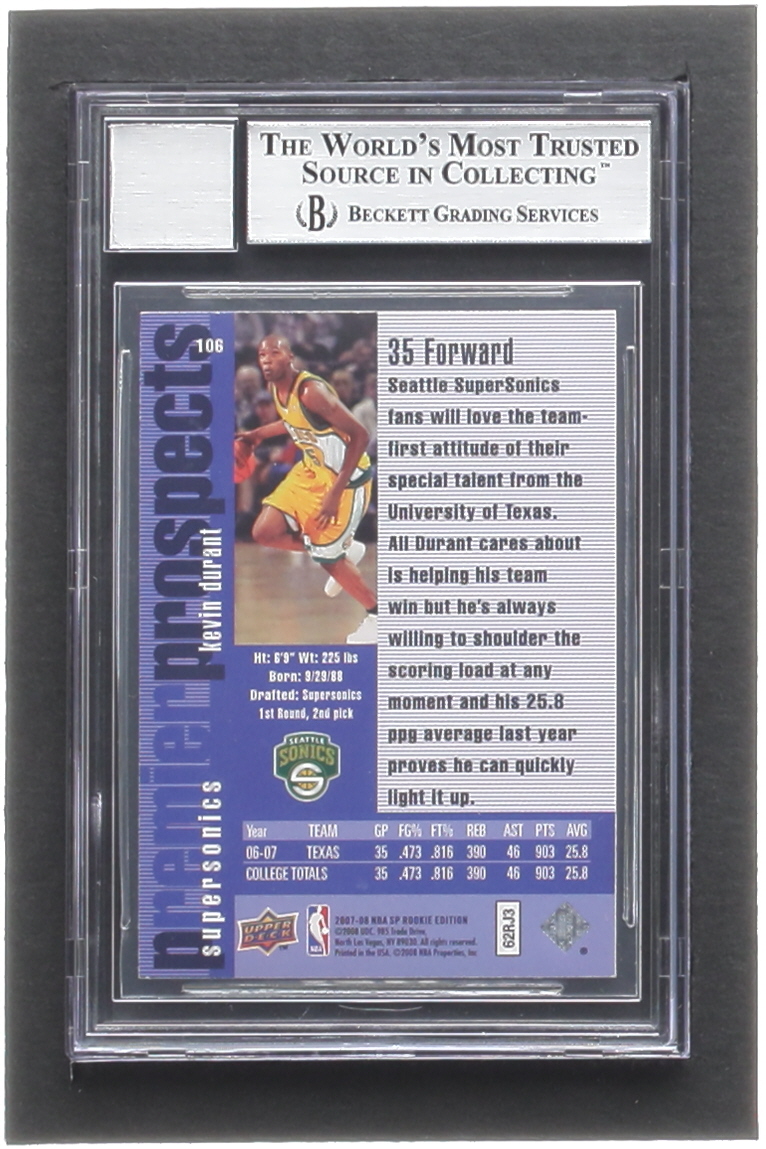 Kevin Durant Signed 2007-08 SP Rookie Edition #106 RC / 96-97 (BGS | Autograph Graded BGS 10)