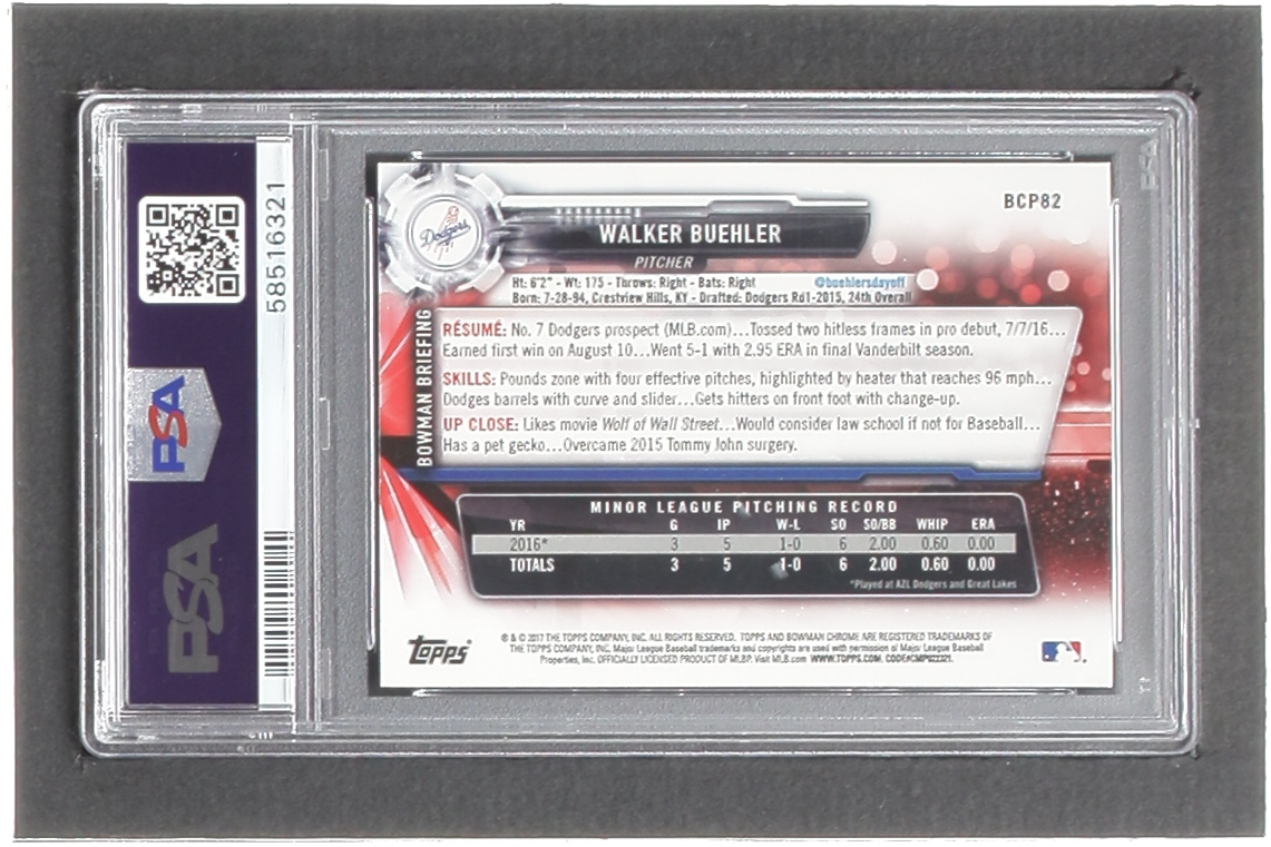 Walker Buehler 2017 Bowman Prospects #BP82 RC (PSA 9)