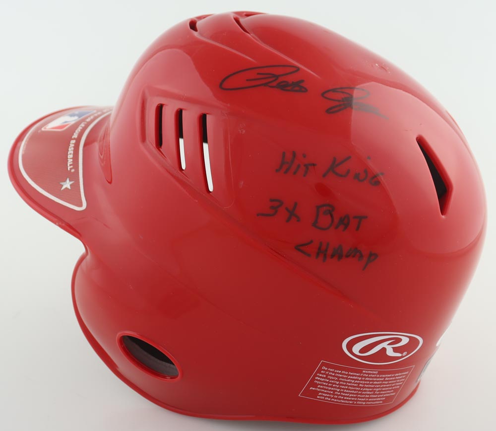 Pete Rose Signed Reds Full-Size Authentic On-Field Batting Helmet Inscribed "Hit King" & "3x Bat Champ" (JSA)