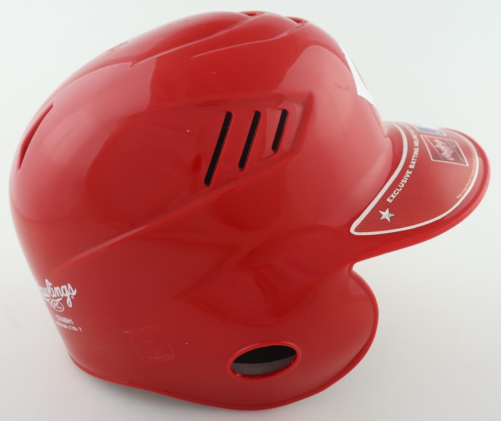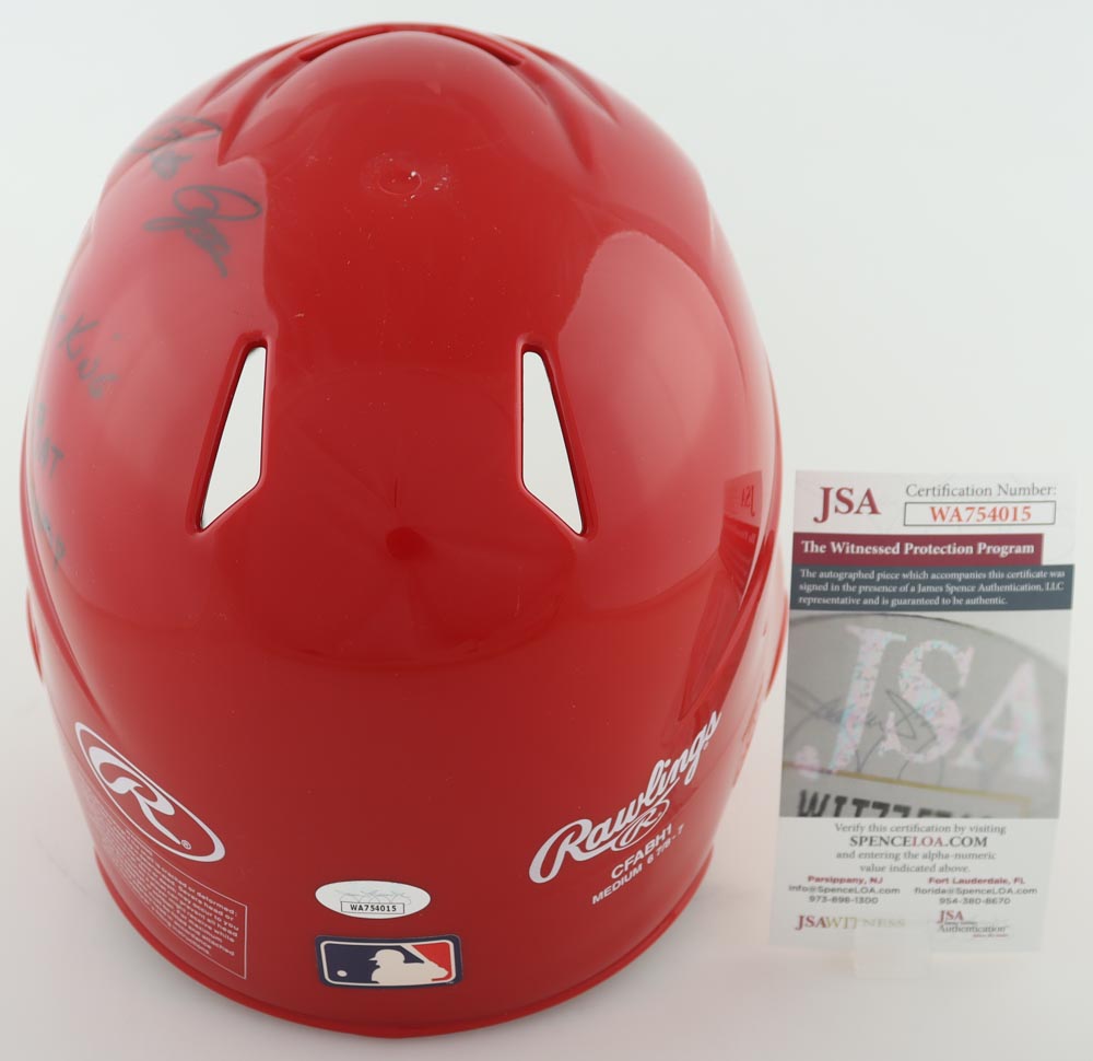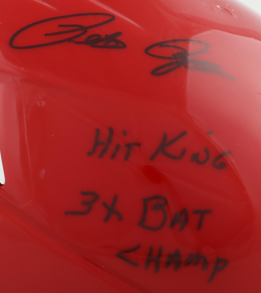 Cincinnati Reds full-size authentic on-field batting helmet. Hand-signed by and inscribed by Pete Rose.