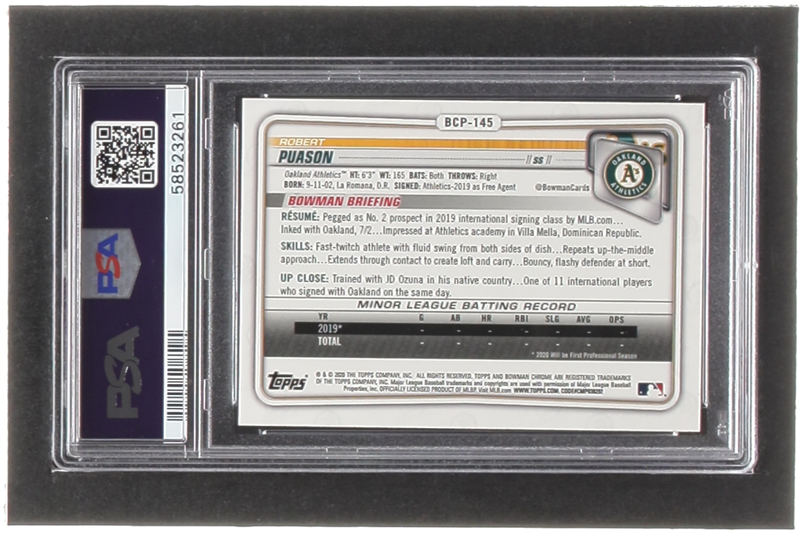 Robert Puason 2020 Bowman Chrome Prospects #BCP145 RC (PSA 9)