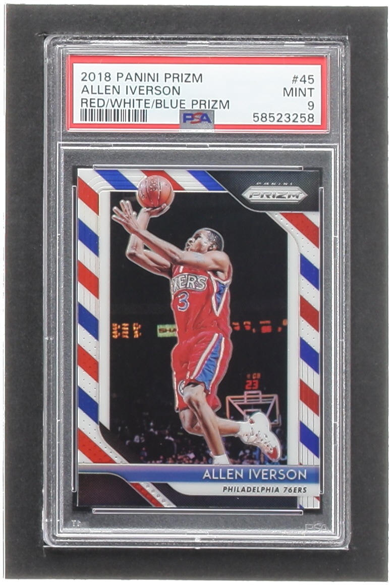 Allen Iverson 2018-19 Panini Prizm Prizms Red White and Blue #45 (PSA 9)