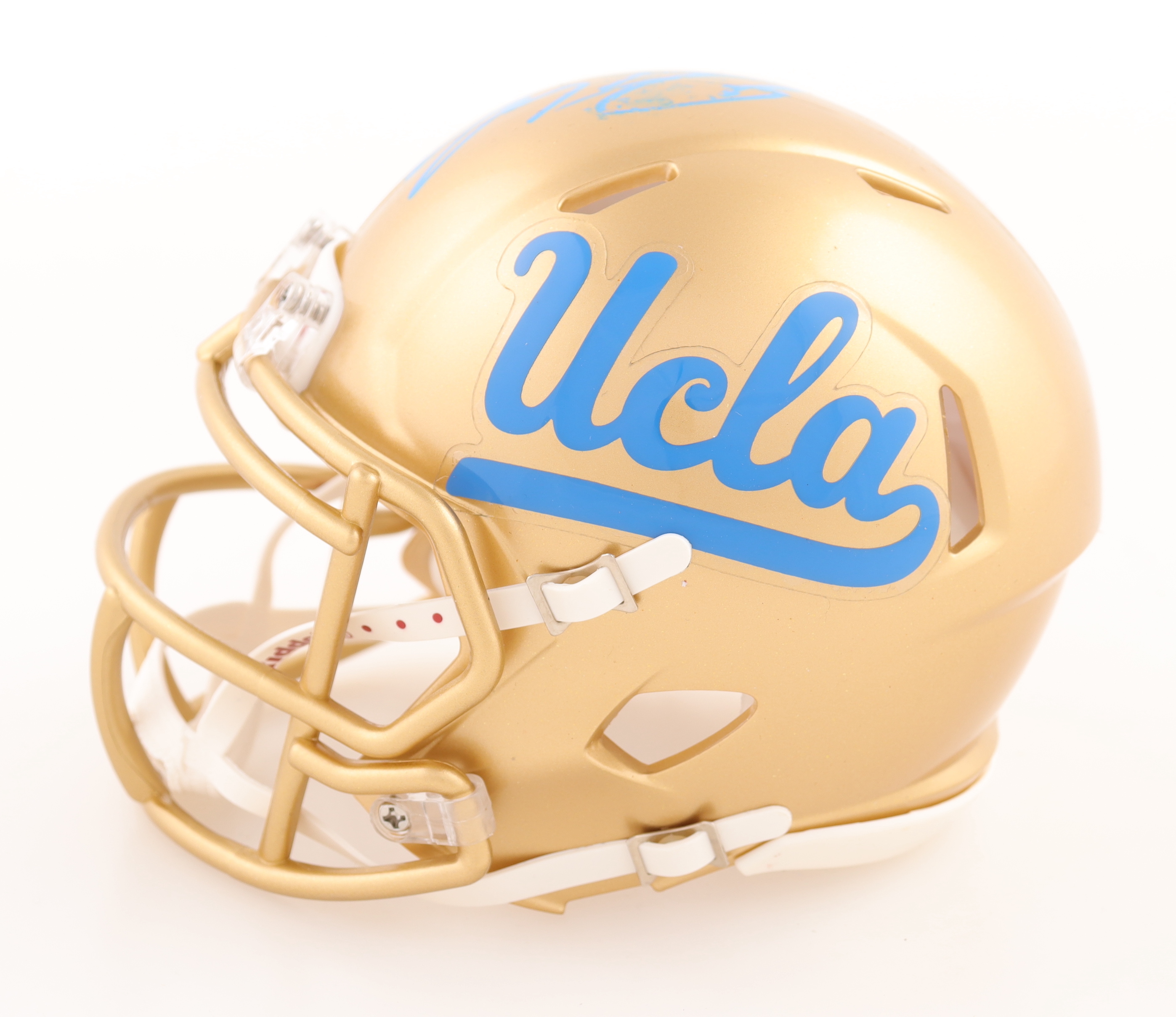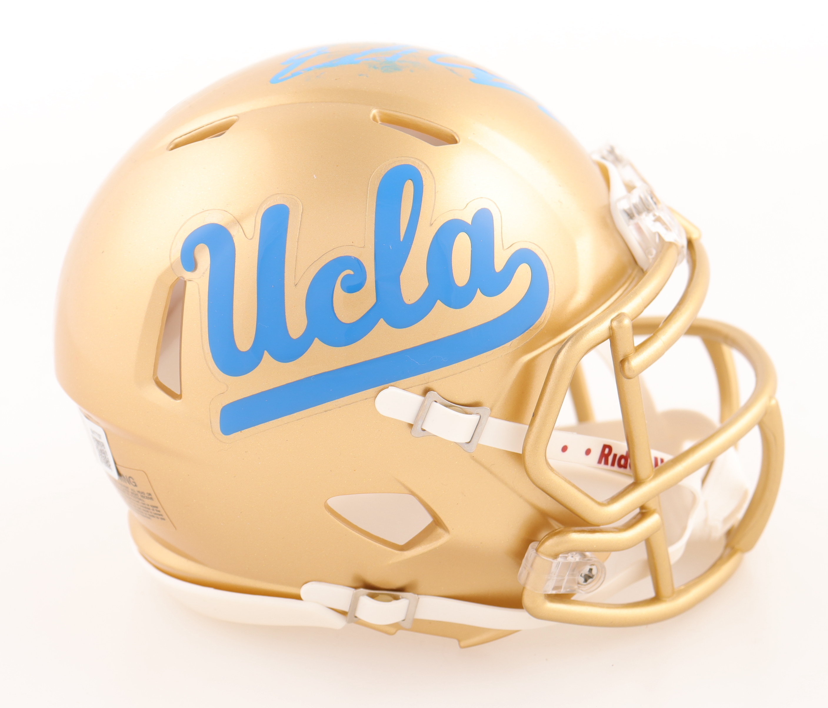 Riddell UCLA Bruins speed mini helmet. Has been hand-signed and inscribed by Dorian Thompson-Robinson. Please note the signature is smudged.