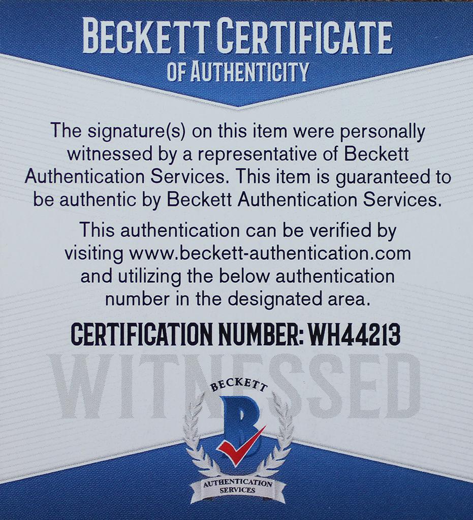 The autograph includes an official Beckett Authentication Services serially-numbered hologram and matching COA for authenticity purposes. The signing of this item was witnessed by Beckett.