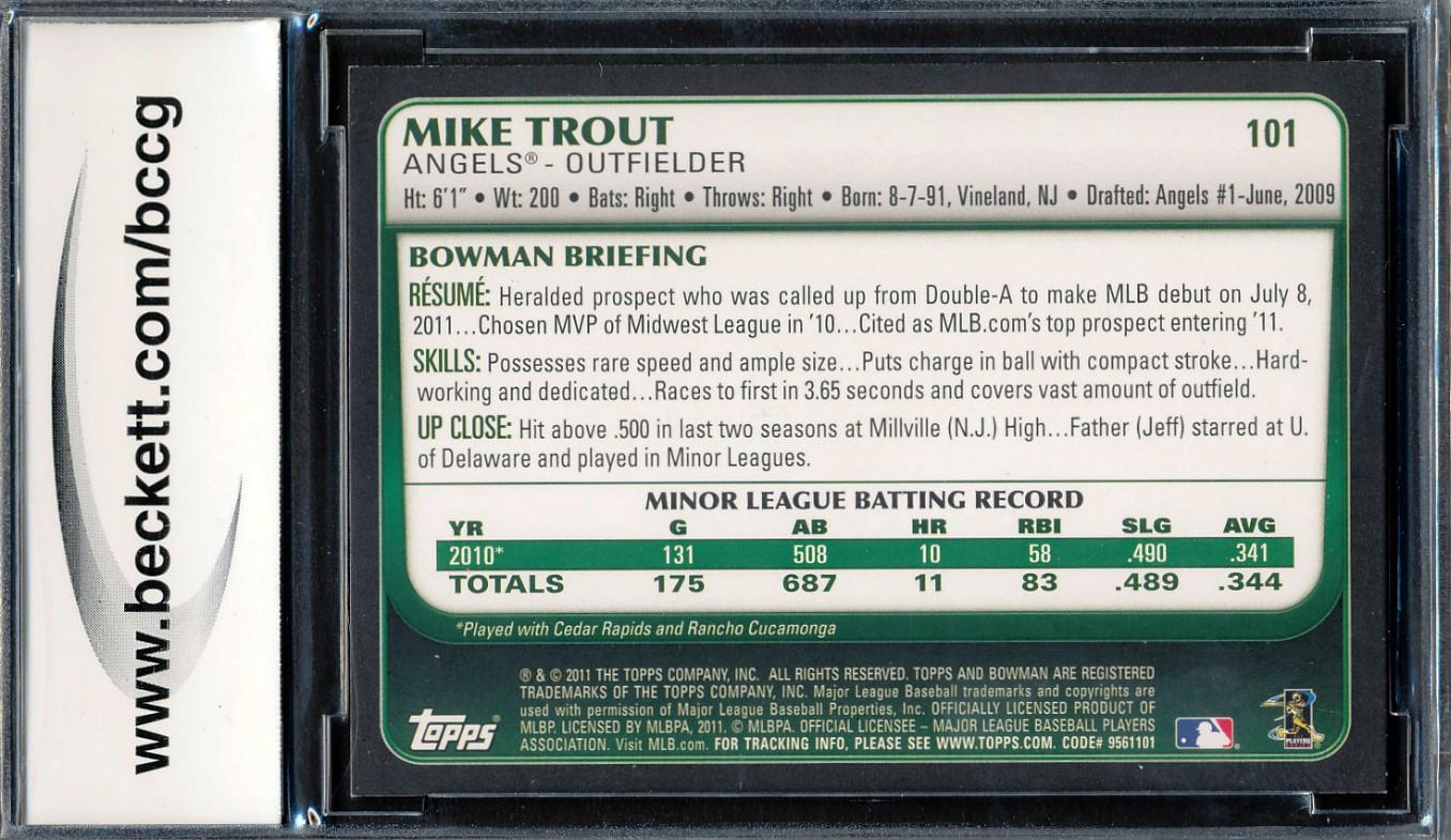 Mike Trout 2011 Bowman Draft #101 RC (BCCG 9)